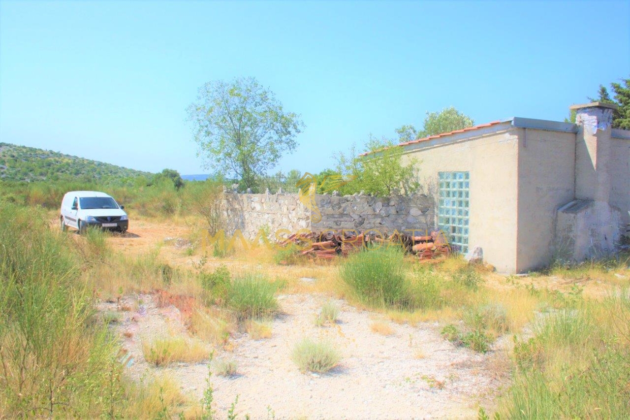 Der vordere Grundstücksteil reicht bis zur ersten Reihe Meer; den Hang zum Meer könnte man als terrassierte Olivenplantage einrichten und einen Pfad zum 110 Meter entferntem Meer schaffen.
