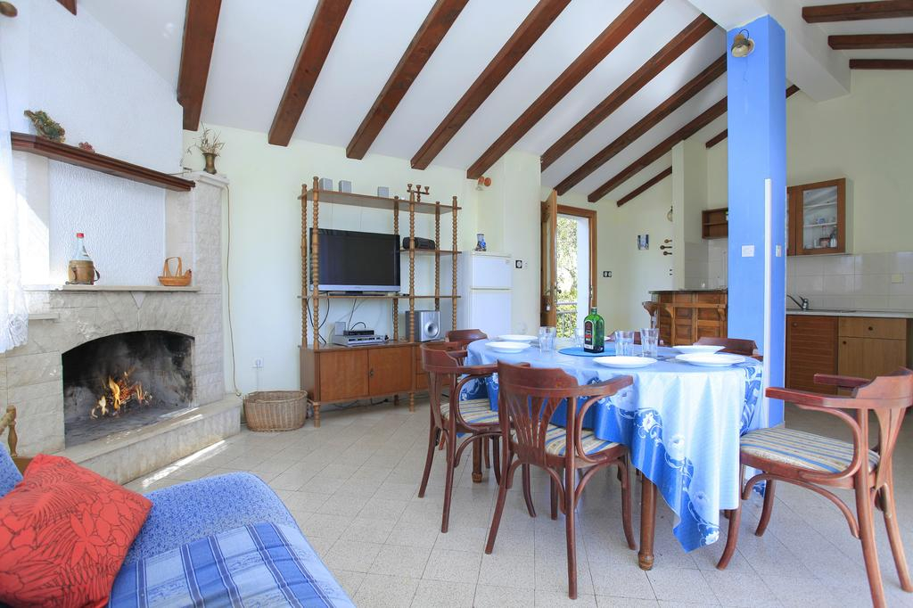 Das Haus verfügt über einen großen Kamin, der den gesamten Raum erhellt.