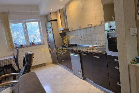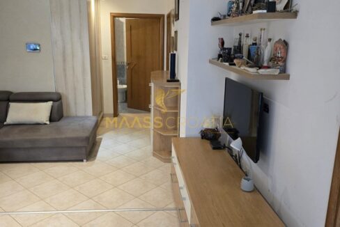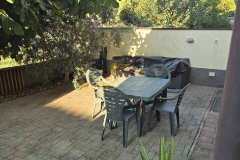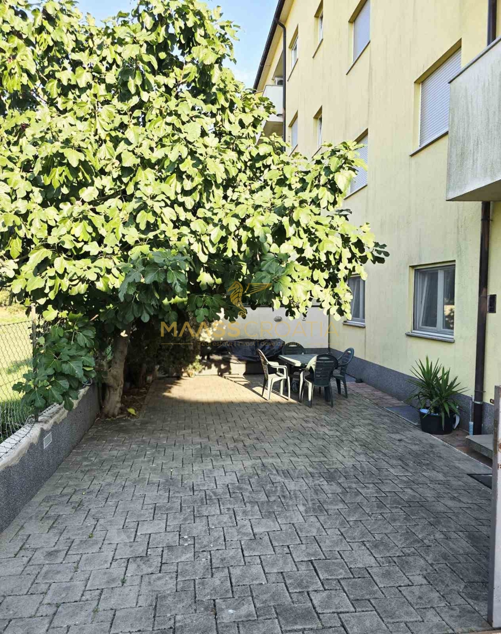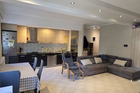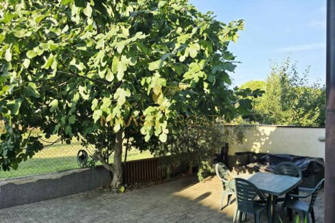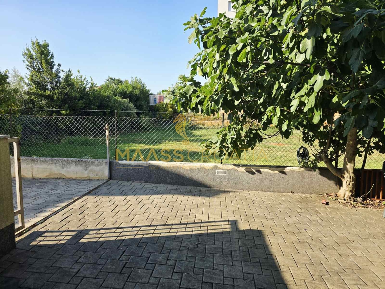 Die Wohnung verfügt über zwei Schlafzimmer, ein geräumiges Wohnzimmer mit Essbereich und Küche, ein Badezimmer und eine überdachte Terrasse mit Zugang zum 50 m² großen, schön angelegten Garten.