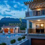 Vor der Villa liegt ein beheizter Außenpool mit Liegestühlen und Sonnenschirmen, ein großer Jacuzzi für 5 Personen, ein Grillplatz sowie ein geselliger Tisch für 10 Personen. Die Villa befindet sich auf einem vollständig eingezäunten Grundstück von 575 m² mit einer Zaunhöhe von 130-180 cm und einer Grünfläche, auf der verschiedene Baumarten sowie weitere Details wie Benkovac-Stein vorhanden sind.