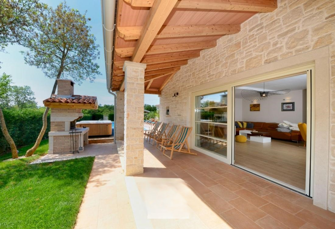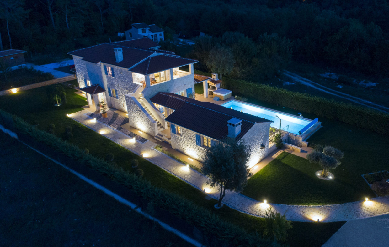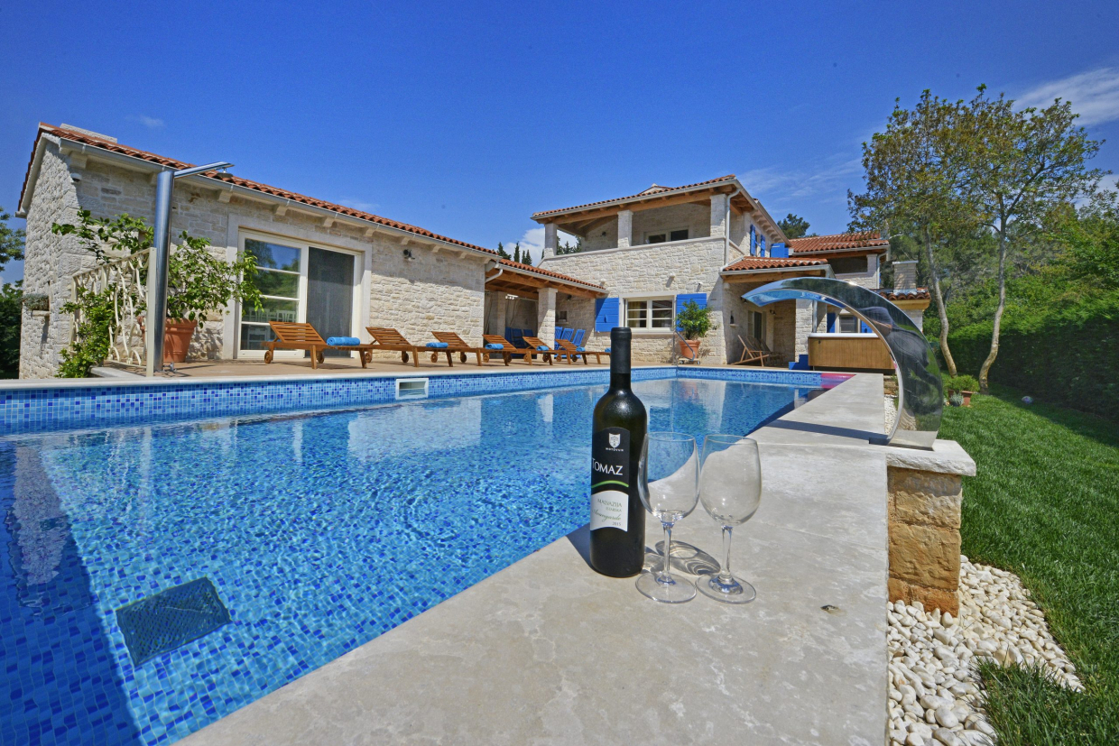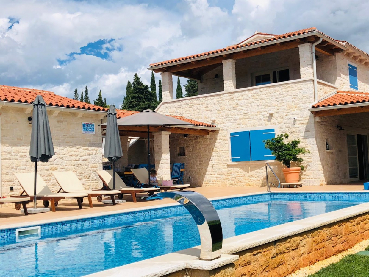 Neu gebaute, moderne Villa mit Infinity-Pool und Panoramablick auf das Meer in Kaštelir. Die Villa bietet eine...
