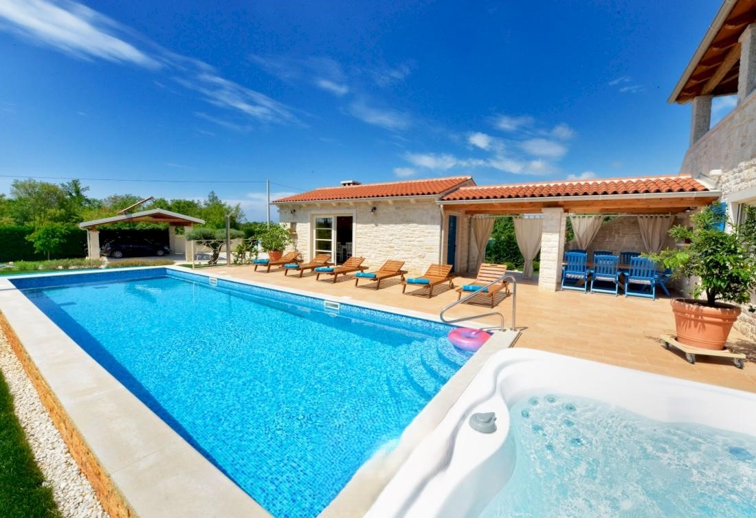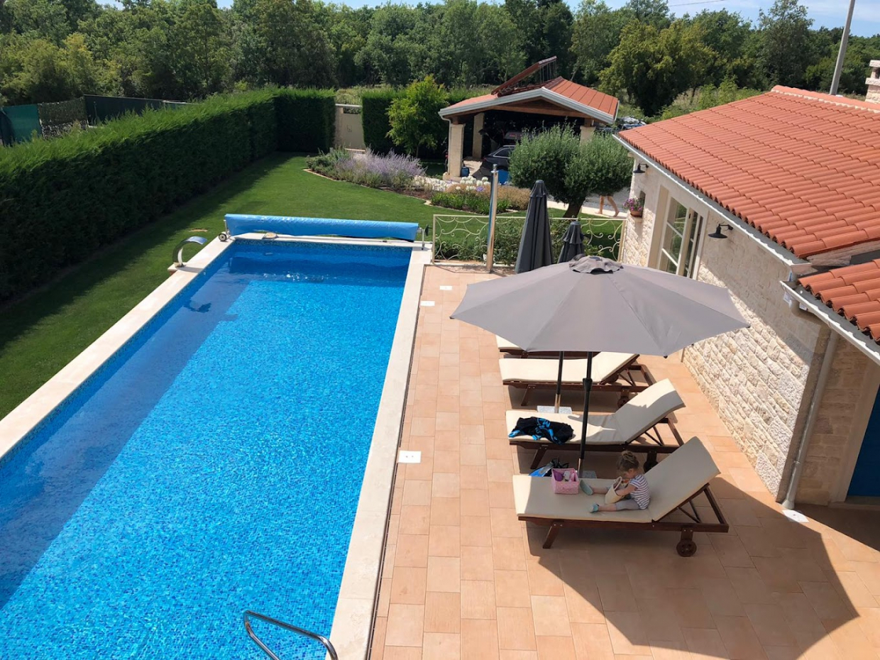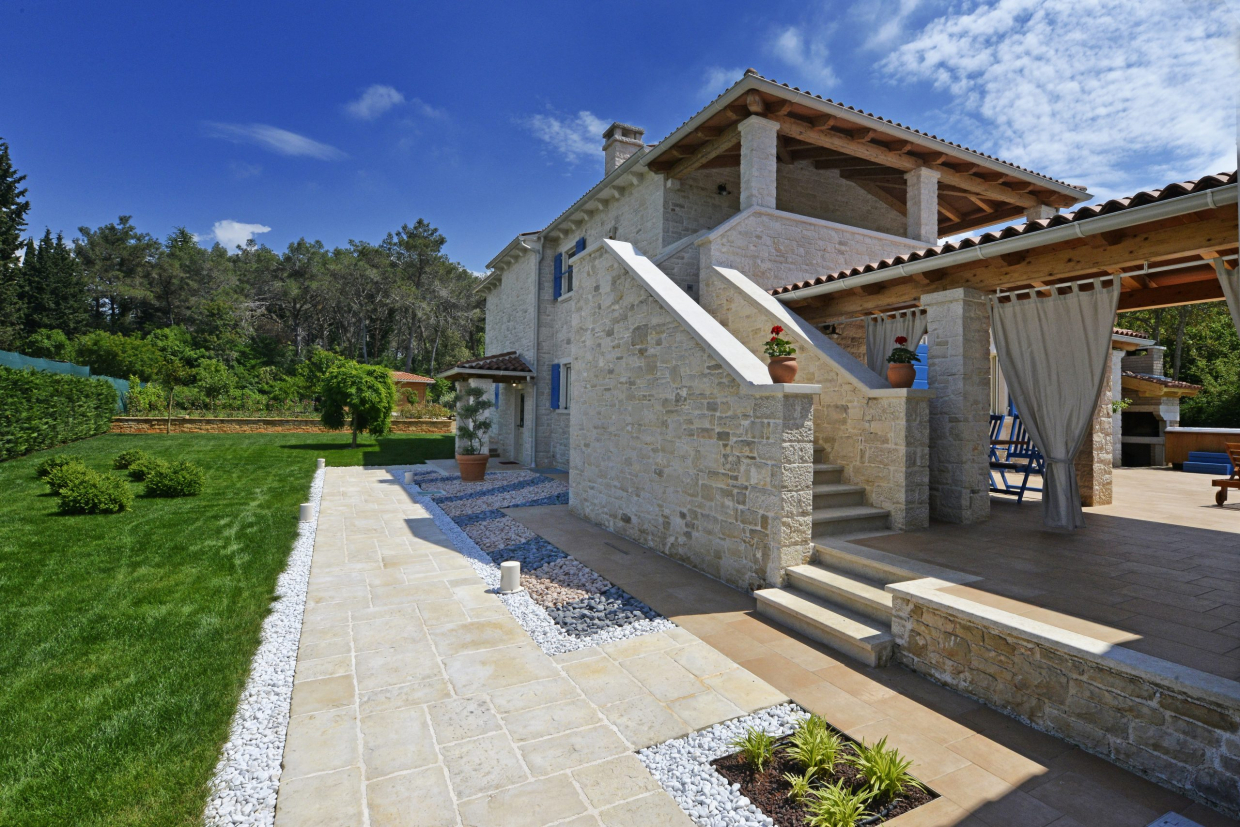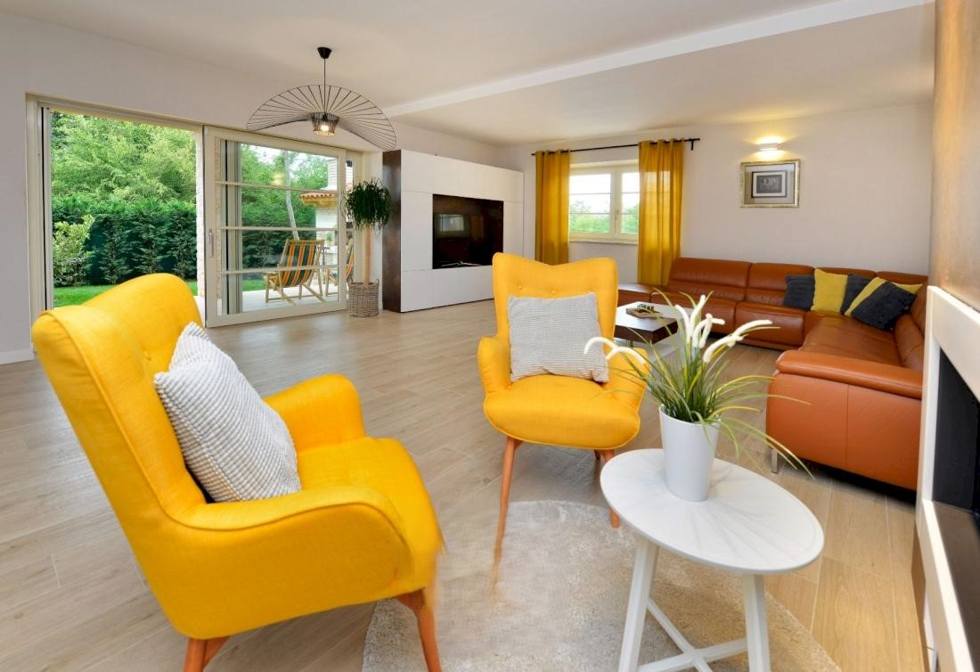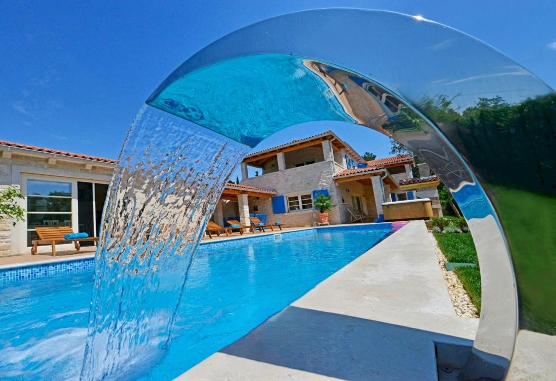 Neu gebaute, moderne Villa mit Infinity-Pool und Panoramablick auf das Meer in Kaštelir. Die Villa bietet eine...