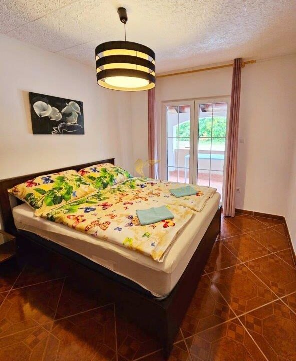 Im Erdgeschoss diese zweistöckigen Hauses befindet sich eine Wohnung von ca. 80 m2, bestehend aus 2 Schlafzimmern, einer Küche mit Esszimmer, einem Wohnzimmer, einem Badezimmer, einer zusätzlichen Toilette und einer überdachten Terrasse.