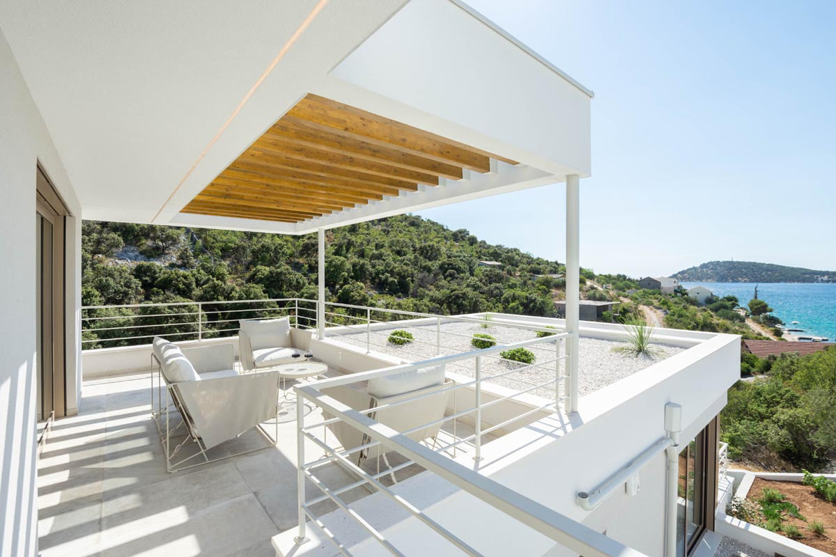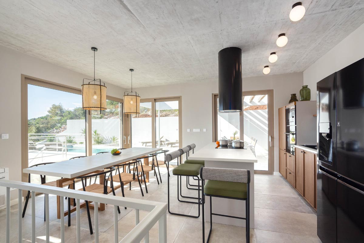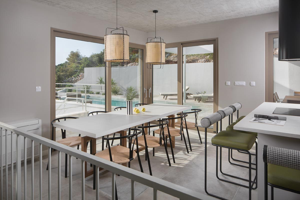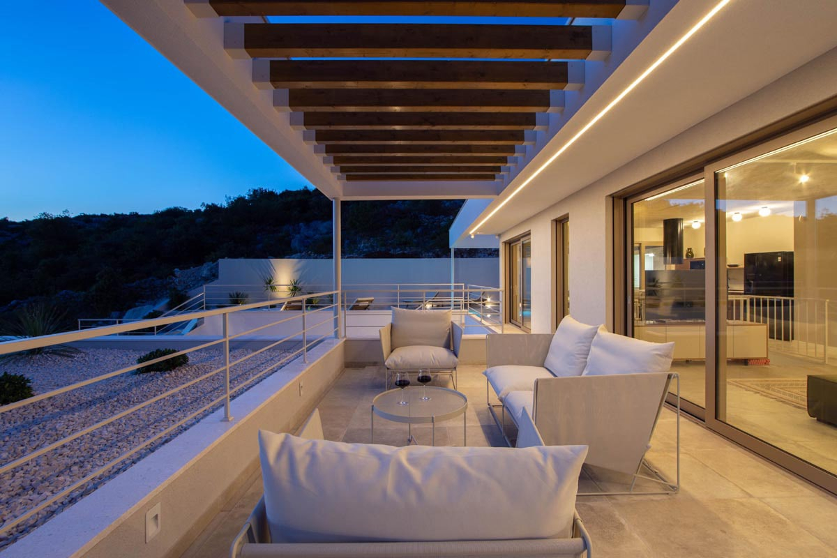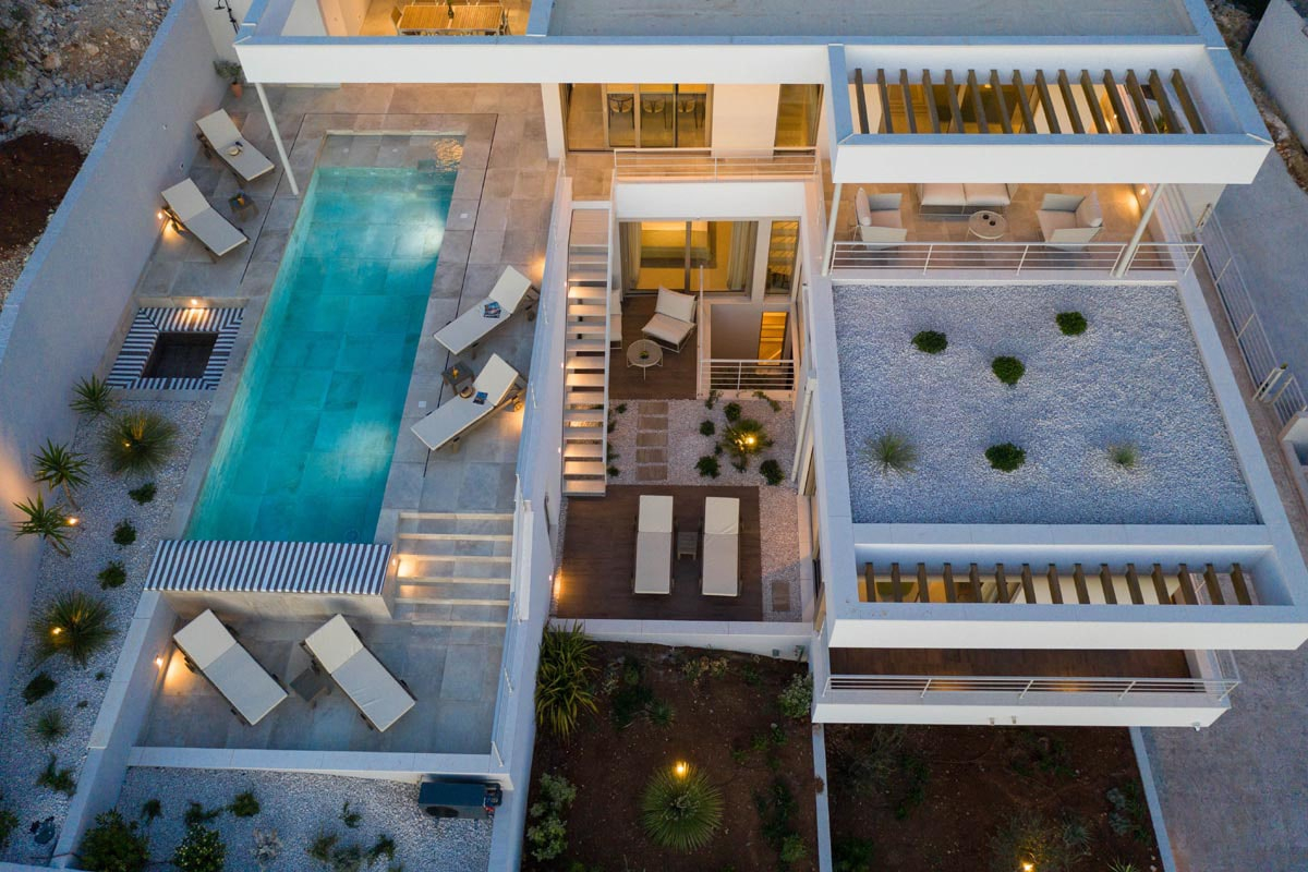 Das Konzept ist sehr interessant und vielfältig, es schafft diese interne Dynamik und macht den Ort so interaktiv wie möglich. Mit seinem sauberen und minimalistischen Ansatz fördert das Innere des Hauses sowohl Einfachheit als auch Wärme. Zum Haus gehören eine geräumige Garage und eine eingebaute Sauna, ein Whirlpool und ein Fitnessraum. Der zentralste Teil des Hauses wird sicherlich der große Swimmingpool auf der Hauptaußenterrasse sein, der für Unterhaltungszwecke genutzt werden wird.