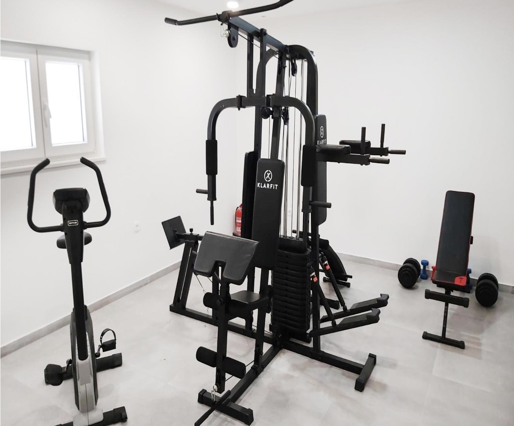 Mit einem eingebauten Fitnessraum und einem Spielzimmer verfügt dieses Haus auch über einen erstaunlich großzügigen und funktionalen Garten mit einem eigenen Spielplatz für Kinder.
