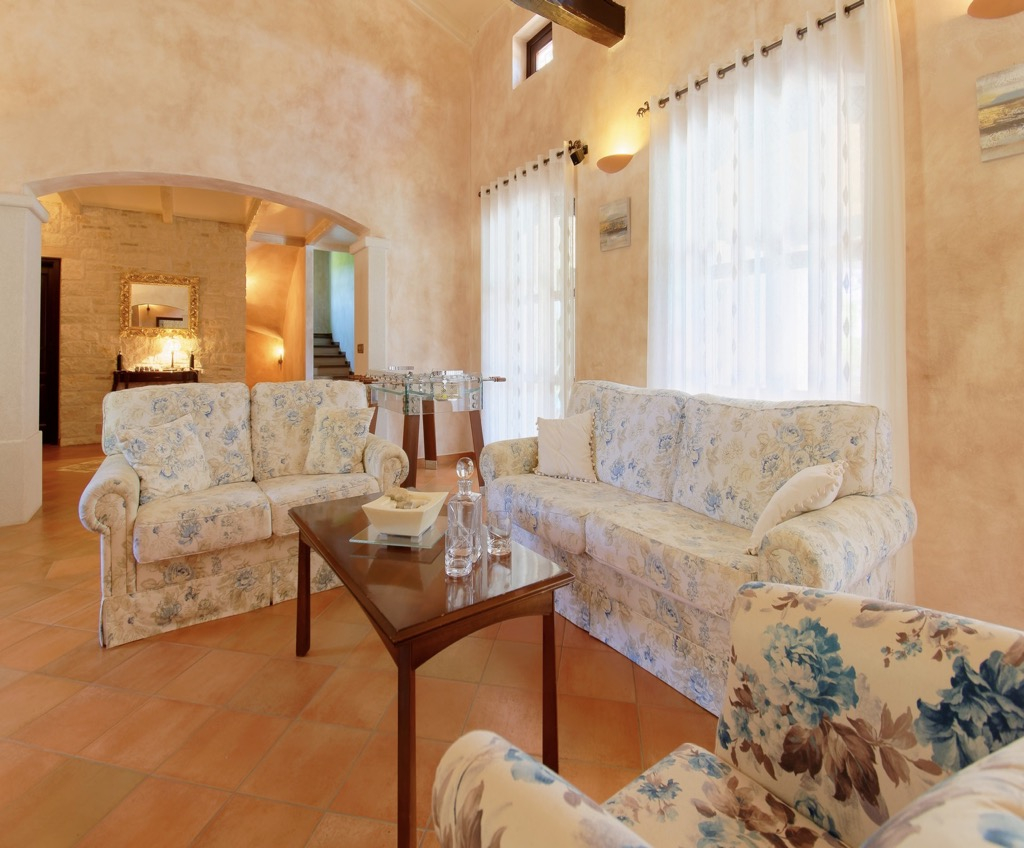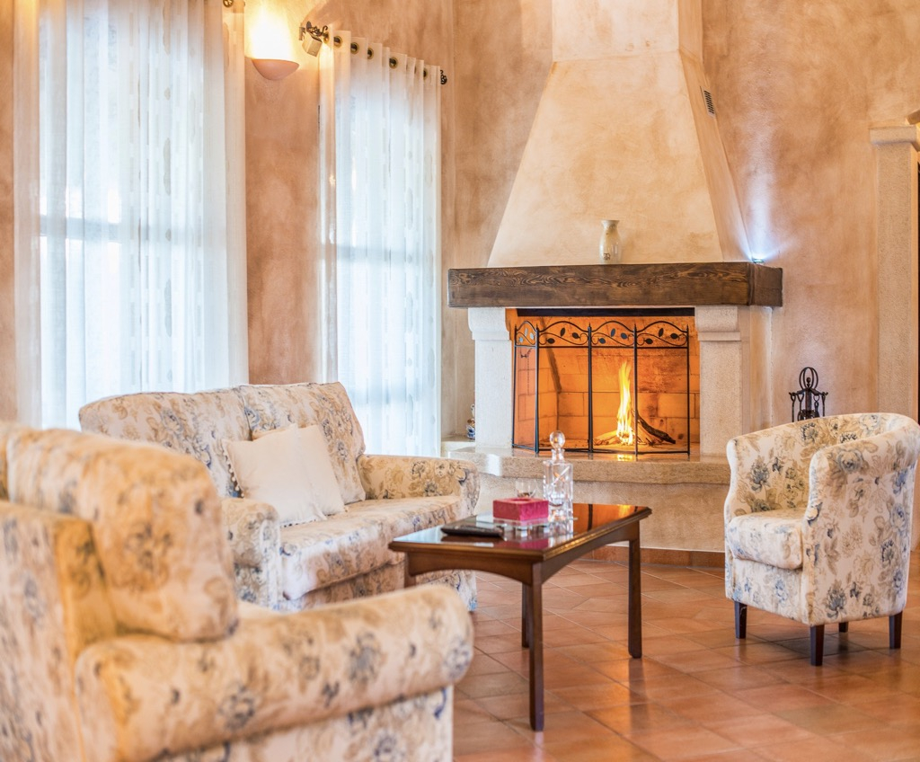 Hohe Decken, Steinwände, Böden und ein riesiger Kamin geben Ihnen das Gefühl, in einem Märchenschloss zu wohnen.