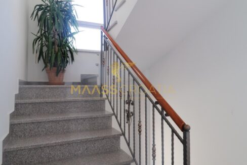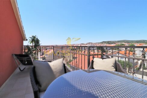 Auf der Ostseite verfügt die Wohnung über ein großes, geräumiges Wohnzimmer mit Esszimmer und Küche mit Ausgang auf eine überdachte Terrasse mit schönem Meerblick, ein kleines Badezimmer und einen Flur, drei Schlafzimmer, einem großen Badezimmer, und Ausgang zur Terrasse auf der Westseite mit Blick auf die Innenstadt.