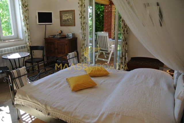Die Villa hat eine typisch istrianische Steinoptik, erstreckt sich über zwei Etagen und verfügt über einen eigenen Weinkeller, der 2005 renoviert wurde.