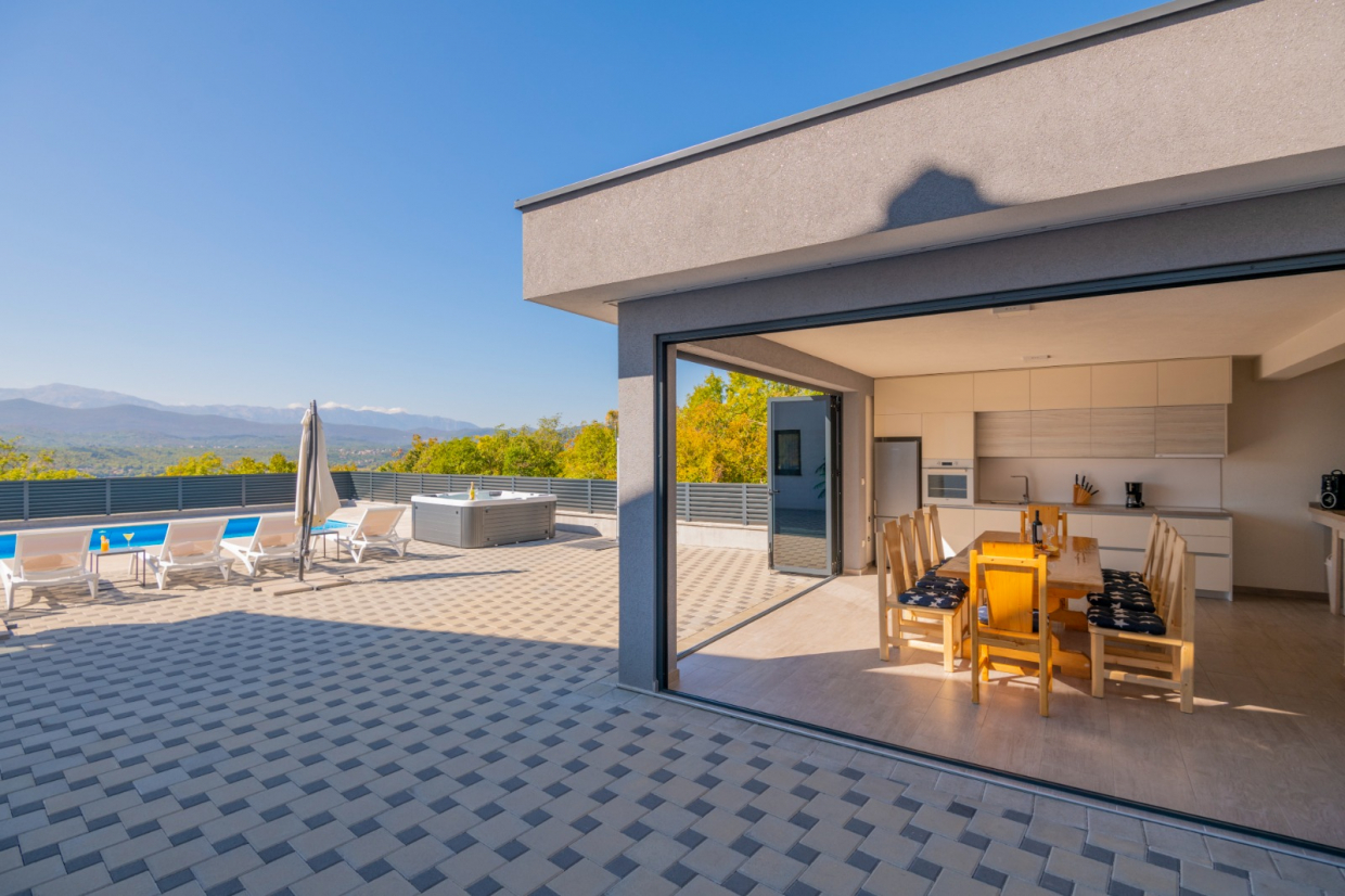 Auf der Terrasse können Sie den Whirlpool und das Essen im Freien mit der Außenküche genießen, ideal für all die sommerlichen Zusammenkünfte mit Familie und Freunden!