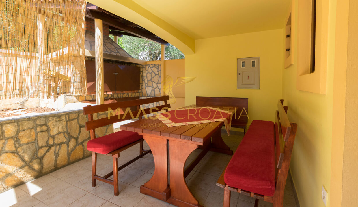 Im ersten Stock befindet sich eine Wohnung mit 2 Schlafzimmern, die Zugang zu Balkonen mit herrlichem Blick auf das Meer, Zadar und die Insel Ošljak haben. Vor der Wohnung im ersten Stock befindet sich eine großzügige Terrasse mit Kamin.