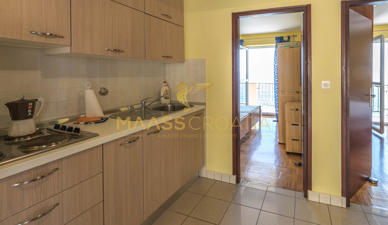 Im Erdgeschoss befindet sich eine Garage, die mit der möblierten Wohnung verbunden ist. Die Wohnung im Erdgeschoss führt direkt zur Promenade und zum Strand.