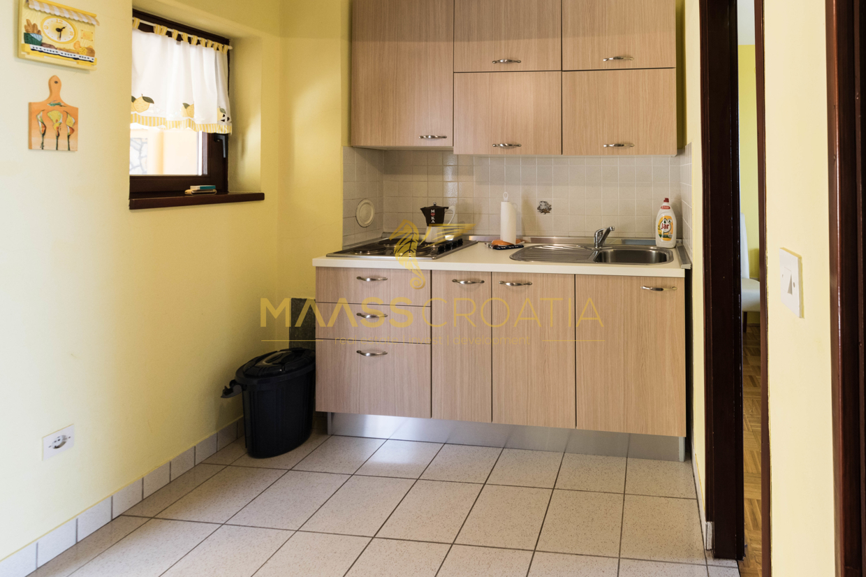 Im ersten Stock befindet sich eine Wohnung mit 2 Schlafzimmern, die Zugang zu Balkonen mit herrlichem Blick auf das Meer, Zadar und die Insel Ošljak haben. Vor der Wohnung im ersten Stock befindet sich eine großzügige Terrasse mit Kamin.