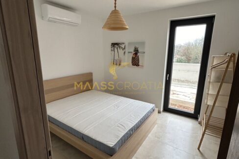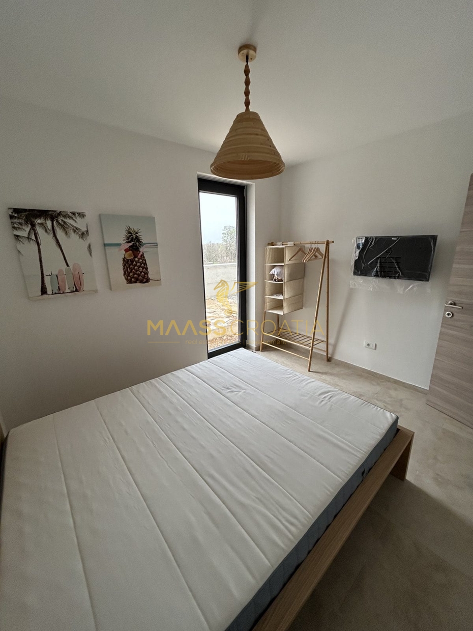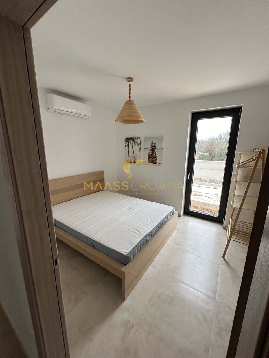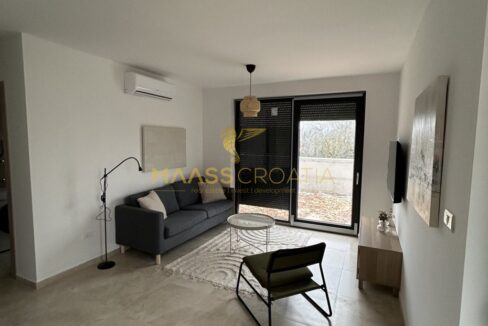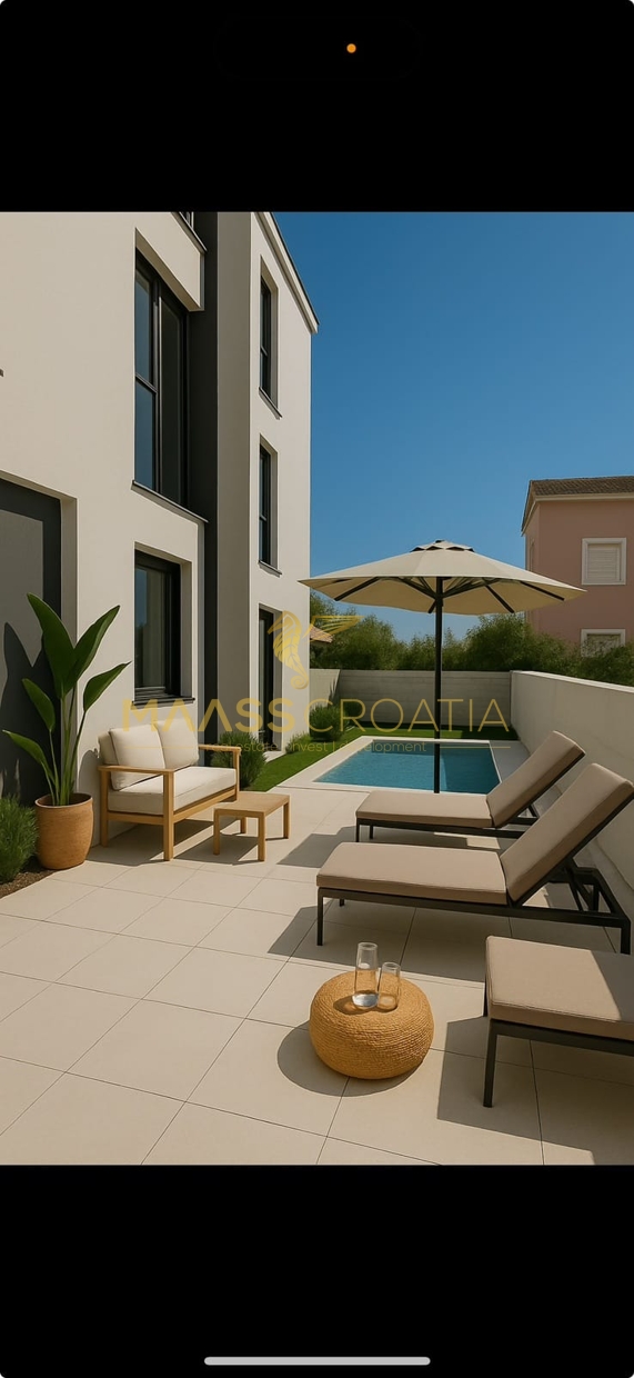Zum Verkauf steht eine wunderschöne Erdgeschosswohnung in einem modernen Neubau in einer der begehrtesten Lagen von Medulin, nur 550 Meter vom Meer entfernt. Diese elegante Immobilie vereint auf perfekte Weise zeitgenössische Architektur, Komfort und Privatsphäre und bietet einen idealen Ort zum Wohnen, Entspannen oder als hervorragende Kapitalanlage zur touristischen Vermietung.