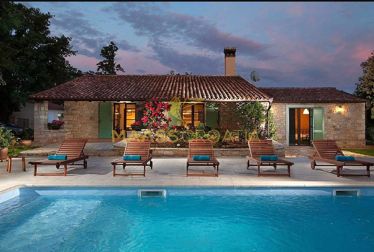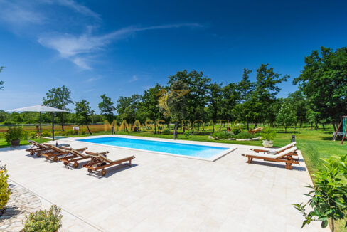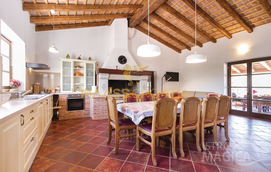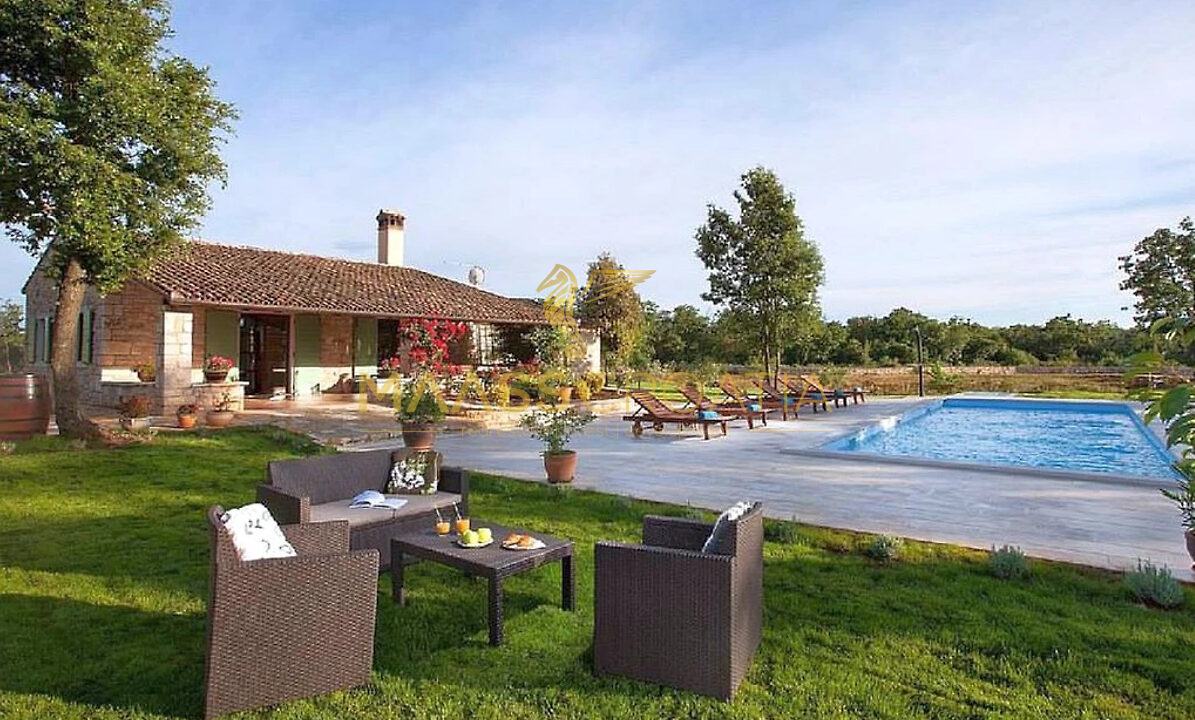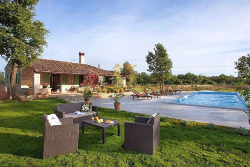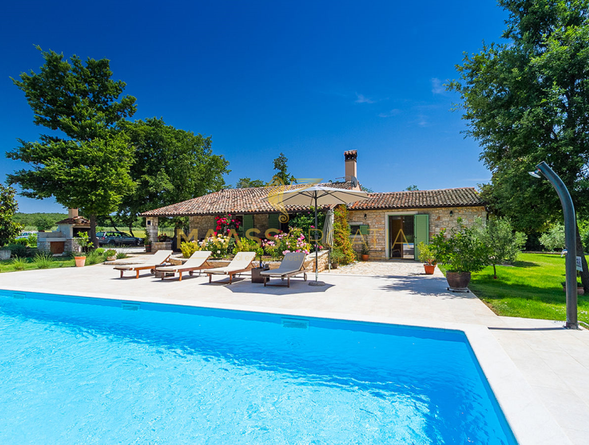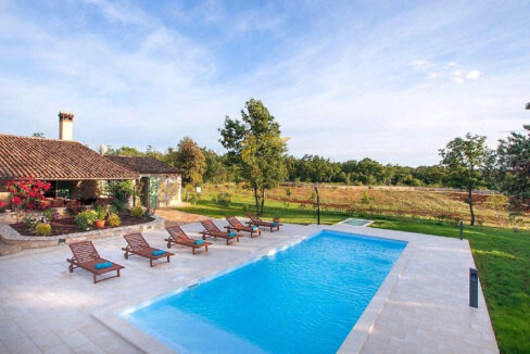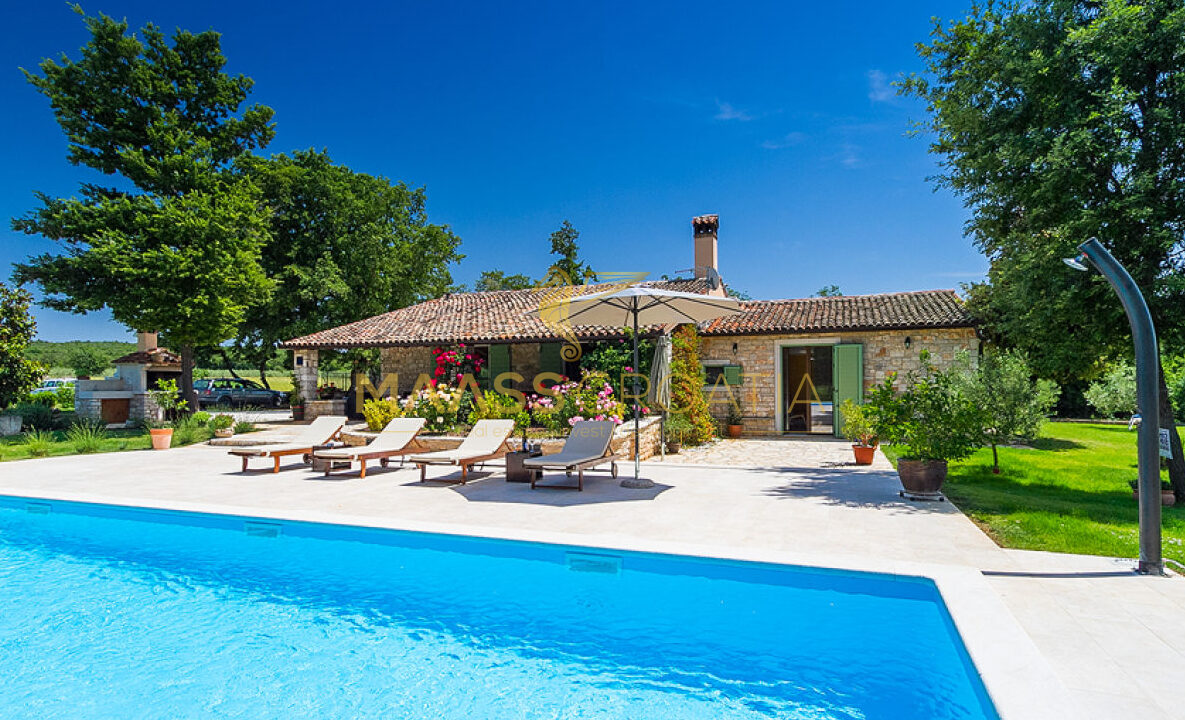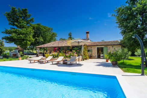 Vor dem Haus befindet sich ein 53 m² großer Swimmingpool mit gepflasterter Liegewiese, während sich hinter dem Haus eine Sommerküche befindet, die bei Bedarf in ein separates Apartment umgewandelt werden kann.