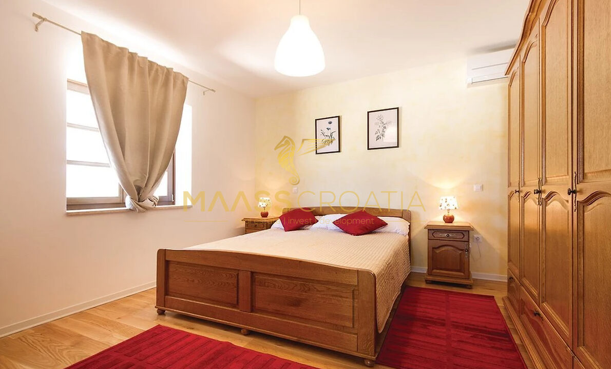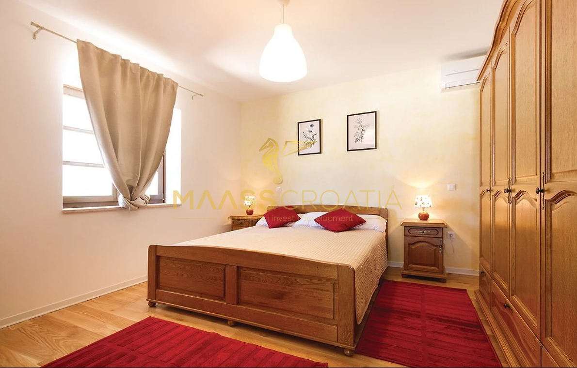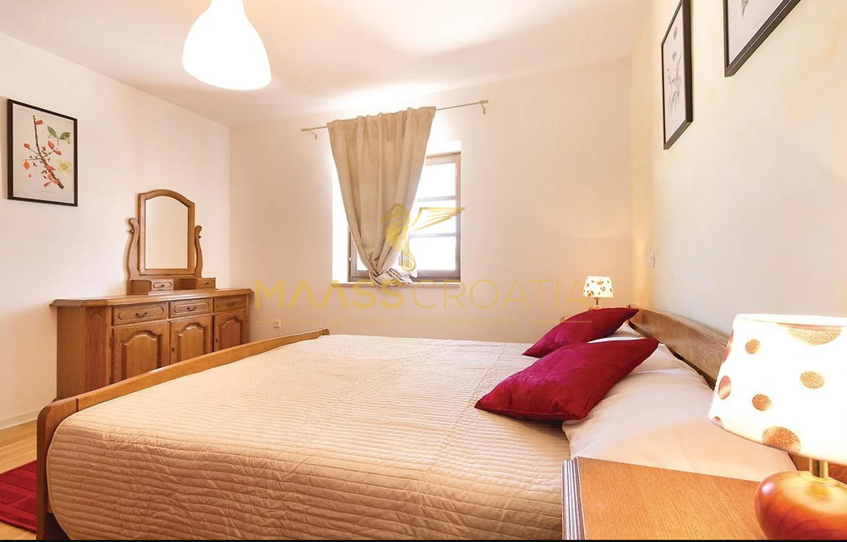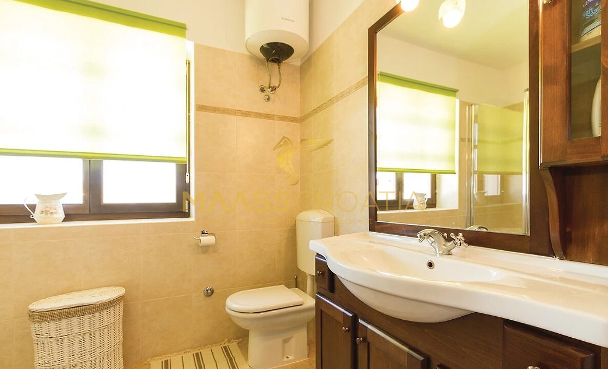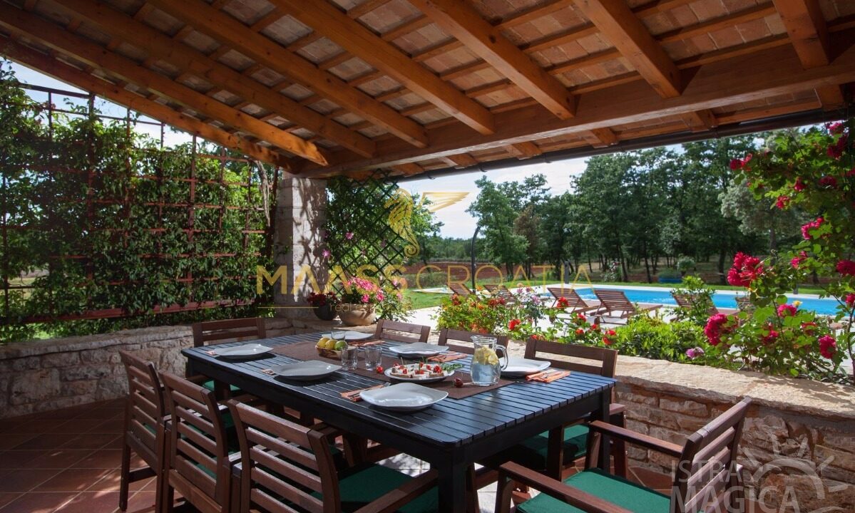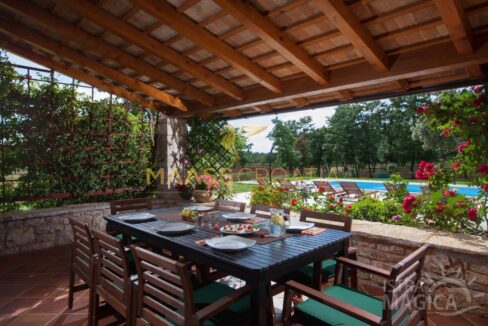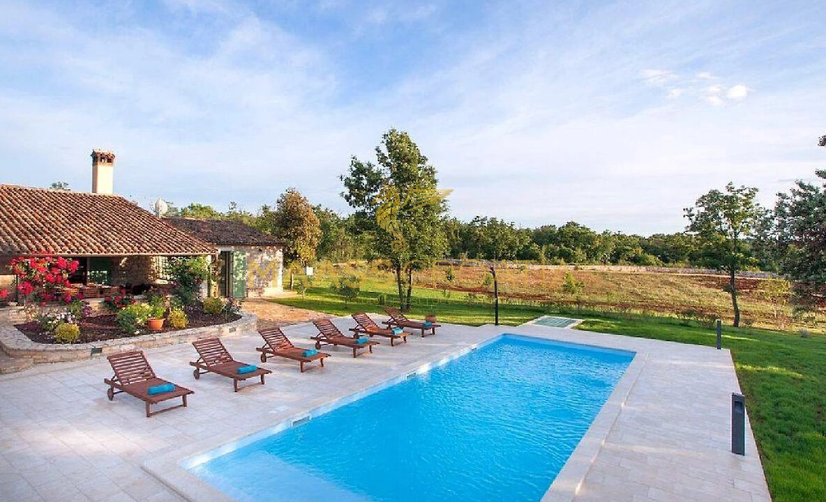 Vor dem Haus befindet sich ein 53 m² großer Swimmingpool mit gepflasterter Liegewiese, während sich hinter dem Haus eine Sommerküche befindet, die bei Bedarf in ein separates Apartment umgewandelt werden kann.