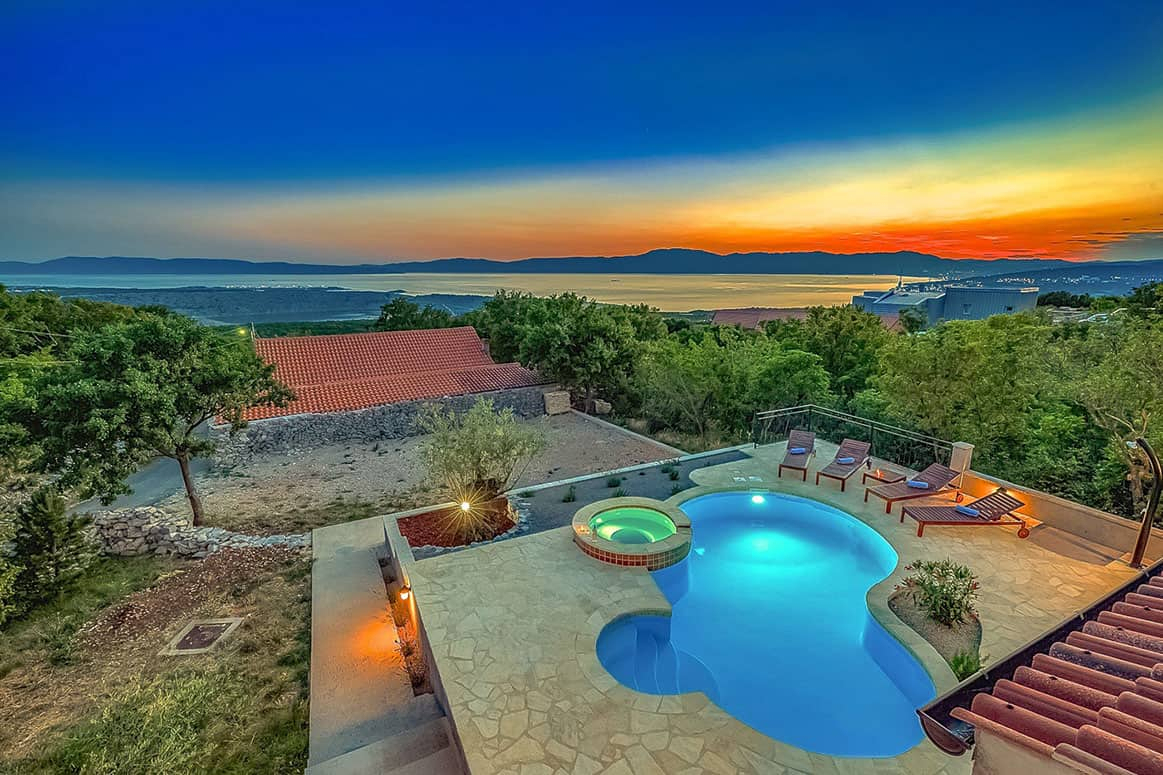 Schöne Doppelhaushälfte mit Pool und Meerblick