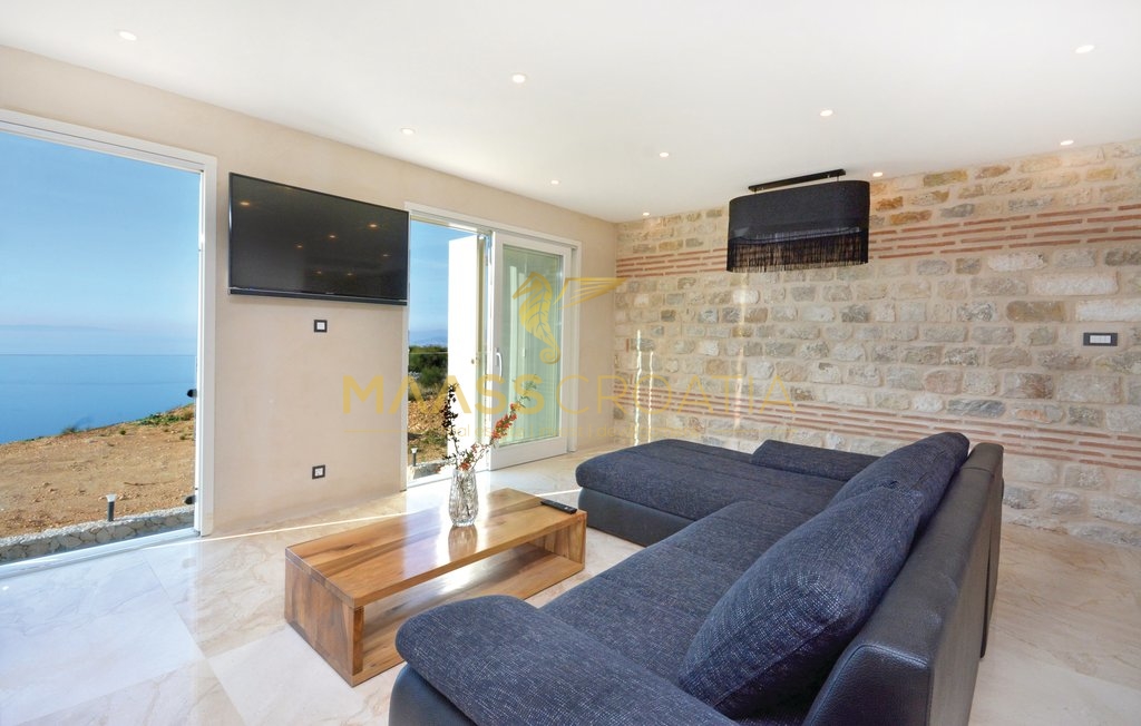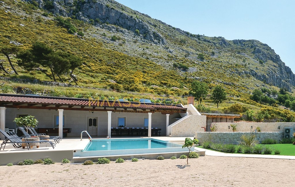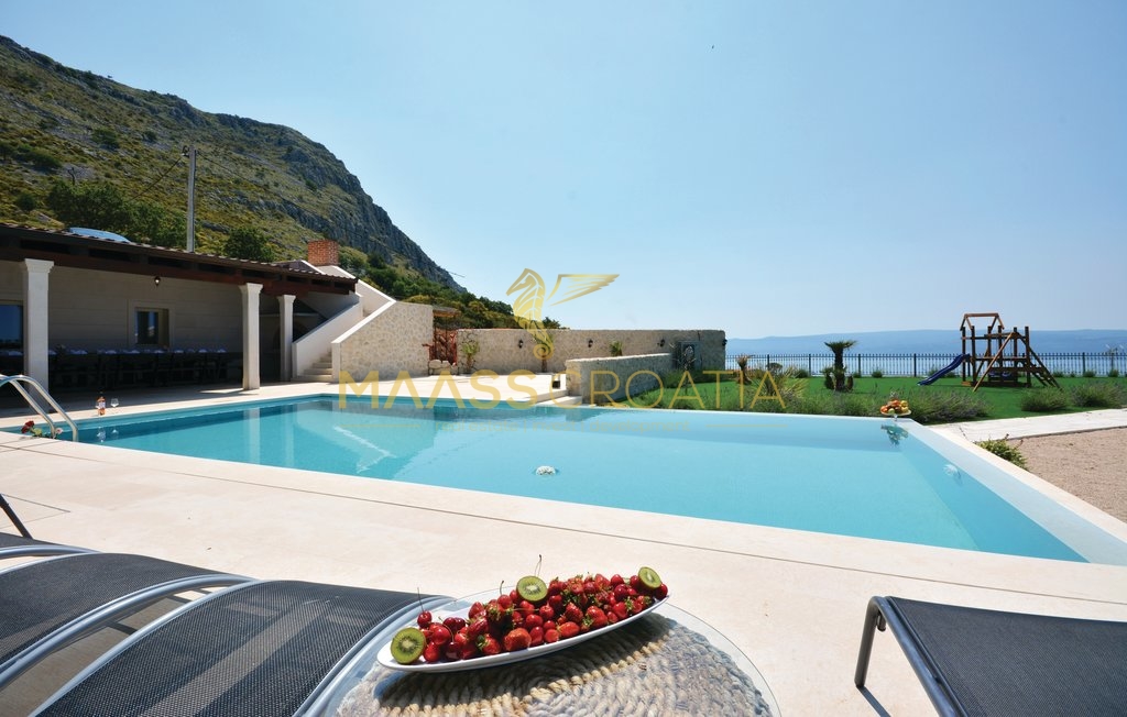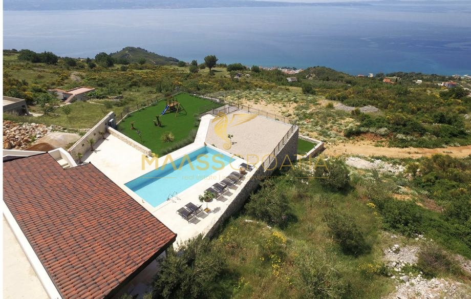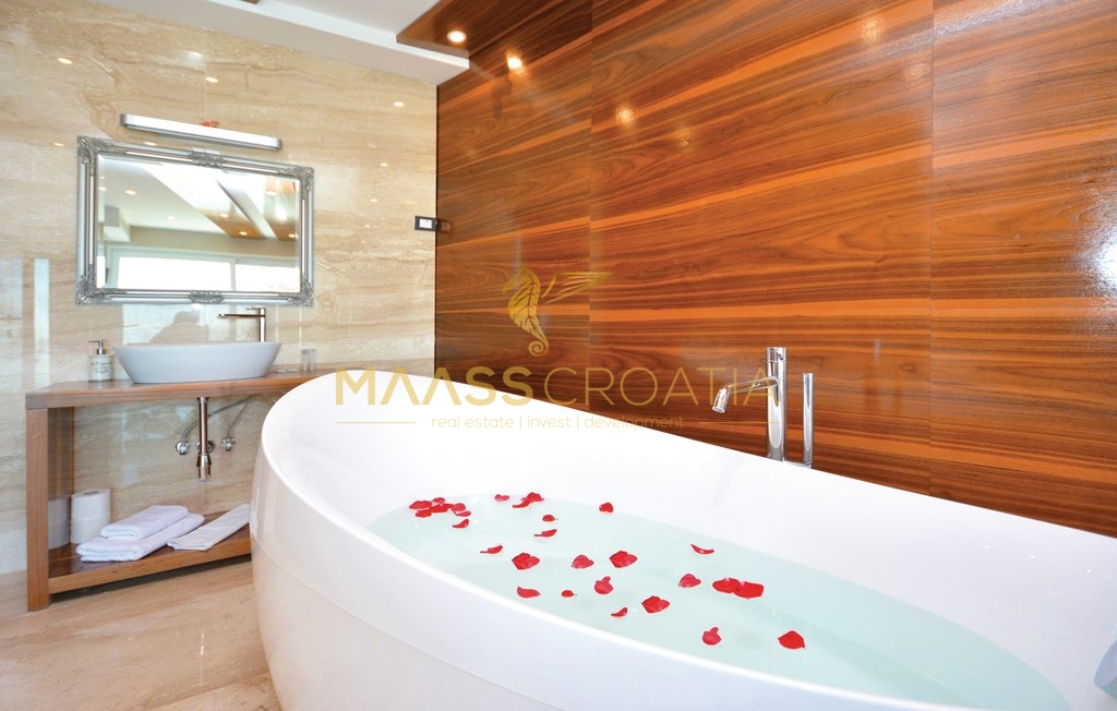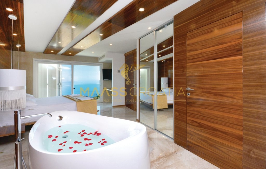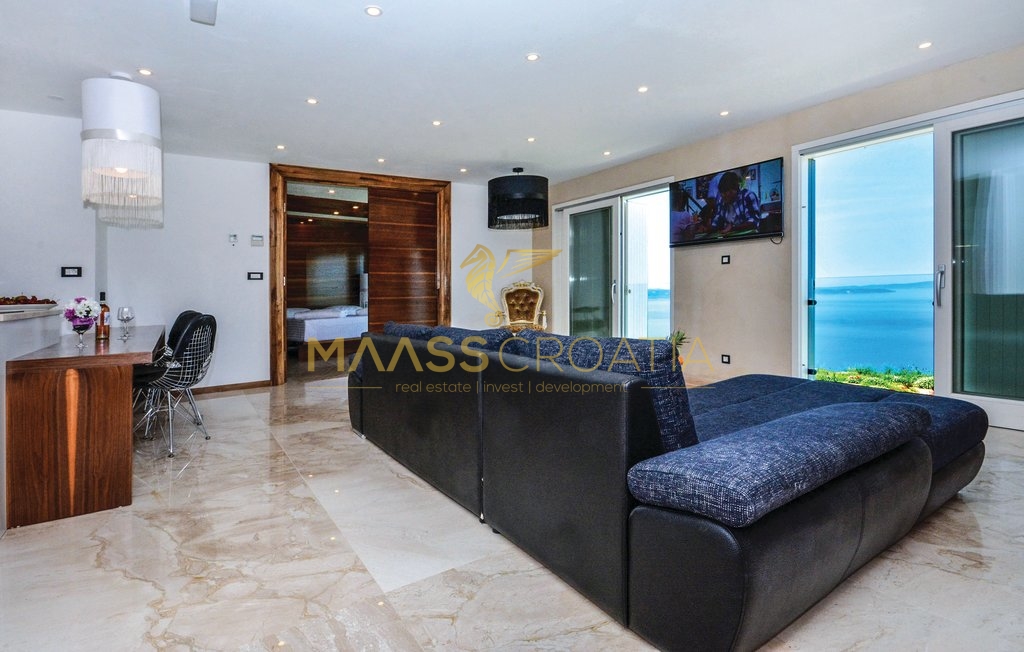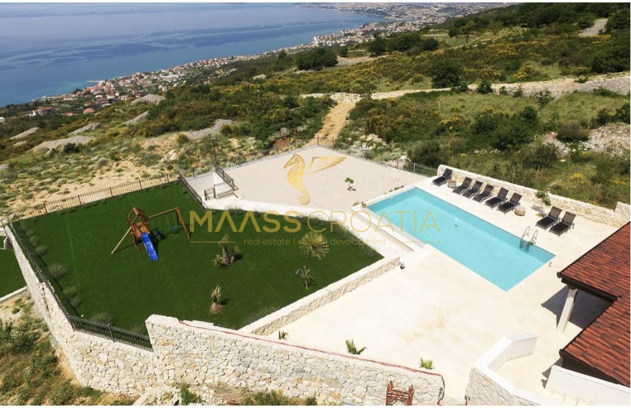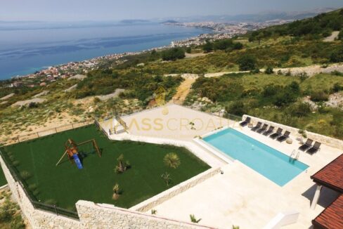 Diese besondere und wunderschöne, luxuriöse Villa mit Pool in Podstrana verfügt dank ihrer ausgezeichneten Lage über einen schönen Ausblick auf das Meer, die Inseln und die Stadt Split.