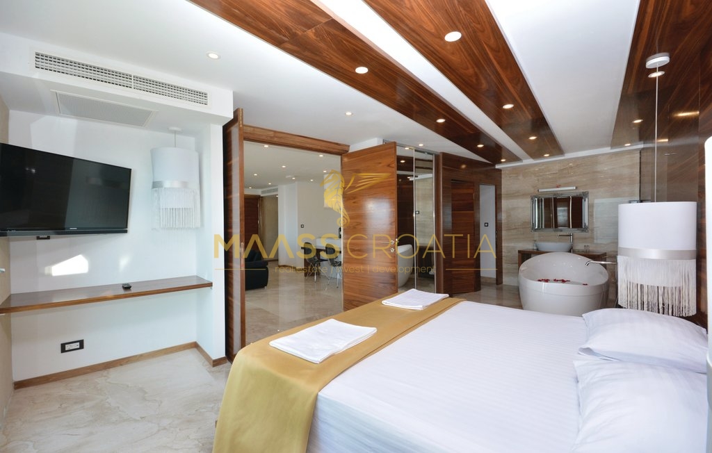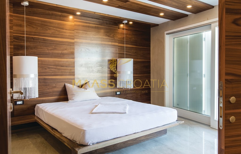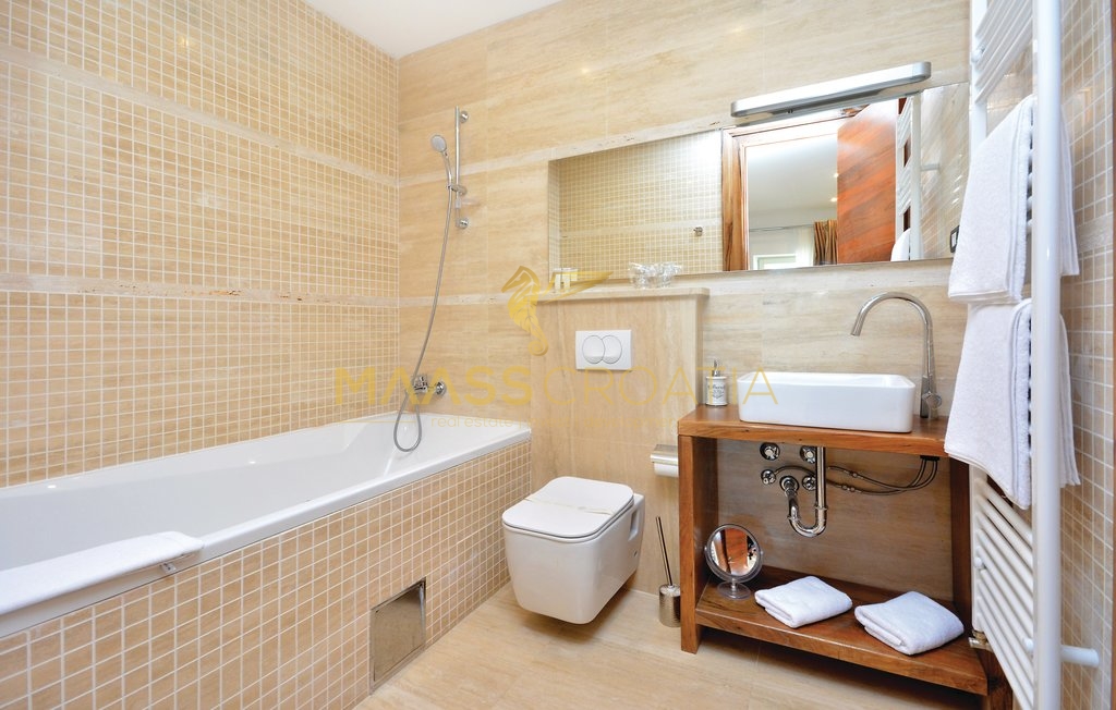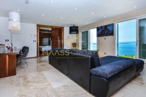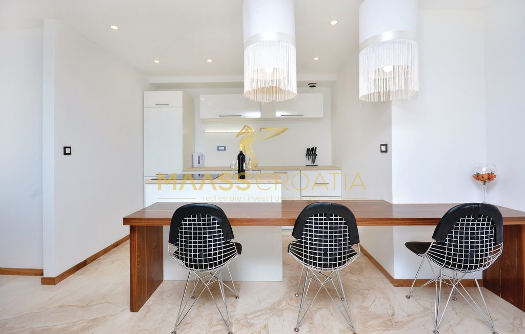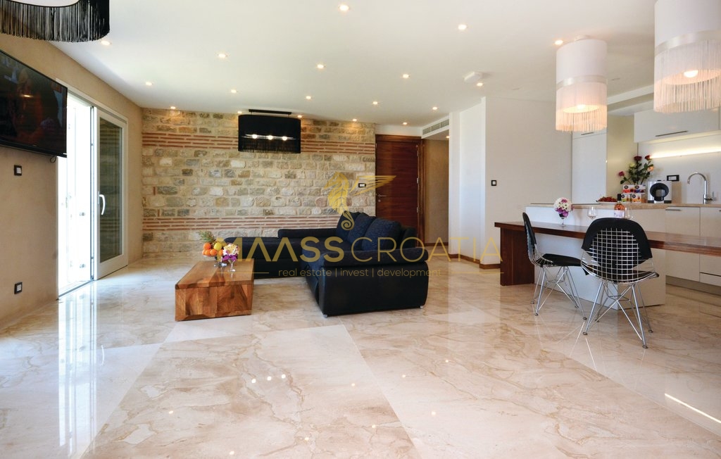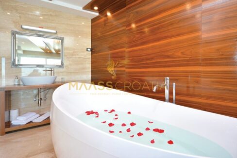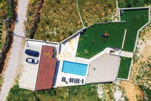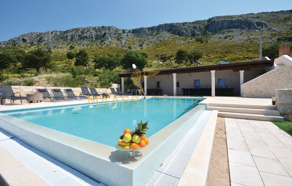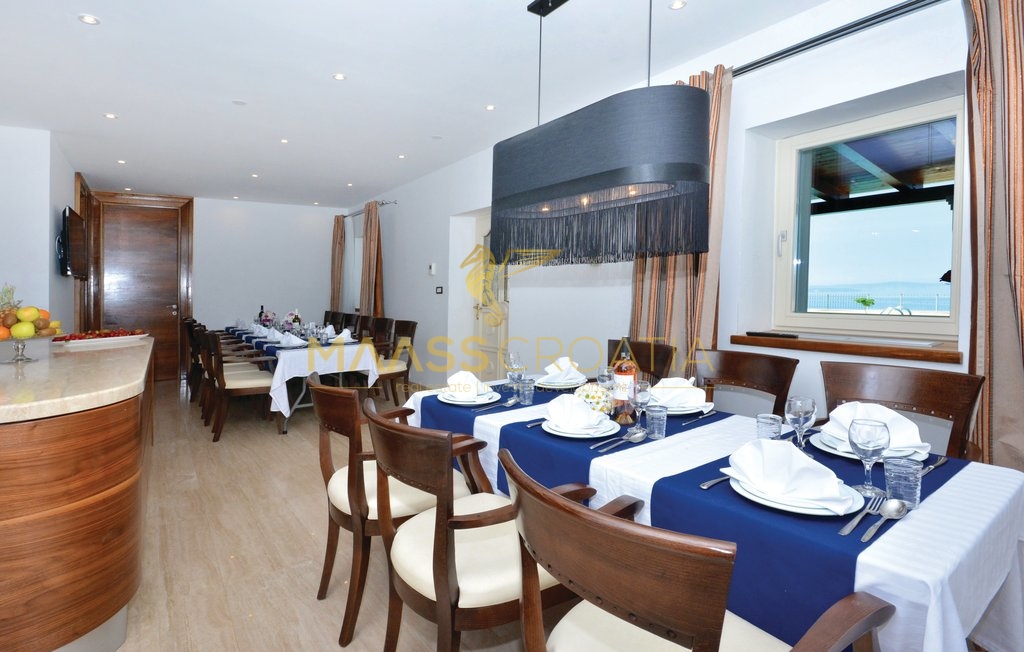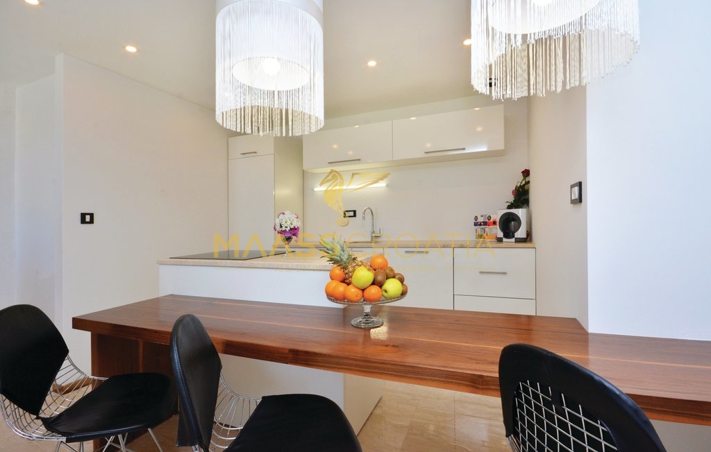 Diese besondere und wunderschöne, luxuriöse Villa mit Pool in Podstrana verfügt dank ihrer ausgezeichneten Lage über einen schönen Ausblick auf das Meer, die Inseln und die Stadt Split.