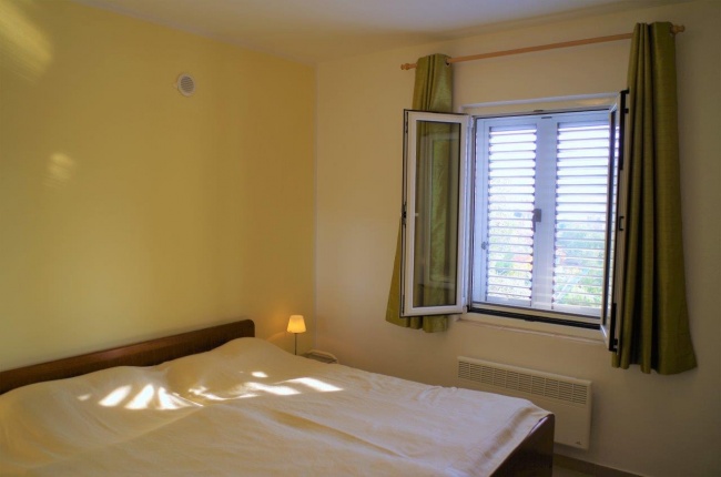 Das im mediterranen Stil gehaltene Einfamilienhaus wurde 1983 errichtet und 2016 komplett renoviert. Es besteht aus zwei Stockwerken: Das Erdgeschoss beherbergt den Eigentümerwohnung mit einem Wohnzimmer, separater Küche, einem Schlafzimmer, Duschbad und großzügiger Loggia. Im ersten Stock, via Aussentreppe erreichbar, steht den Gästen des Hauses ein 27,58 m² großes Appartement mit einer über 22 m² großen Dachterrasse zur Verfügung. Von dort besteht ein schöner Blick auf die gesamte weitläufige Bucht. Insgesamt werden hier 154,22 m² Nutzfläche geboten, inkl. einem 11,5 m² großem Abstellraum im Untergeschoss des Hauses.