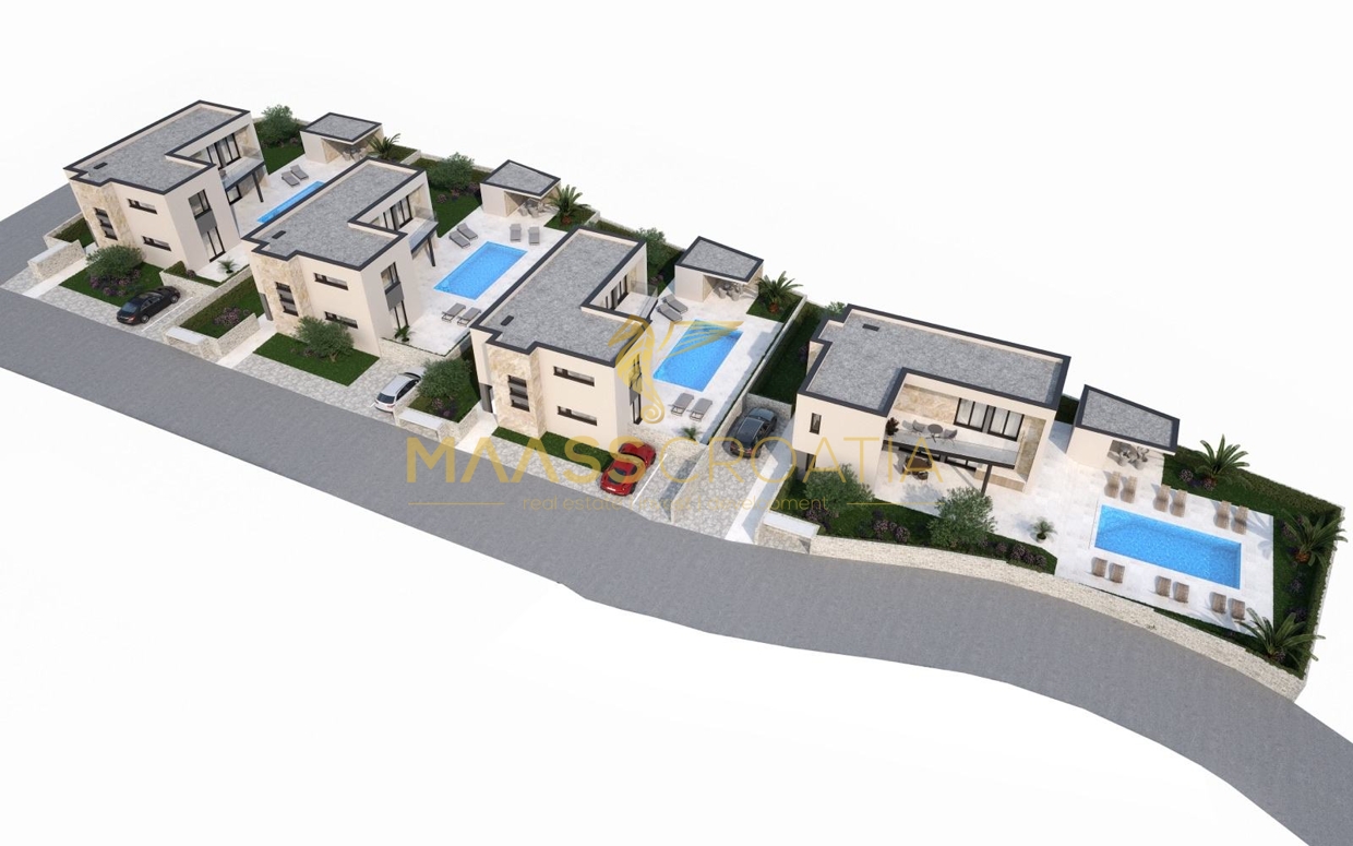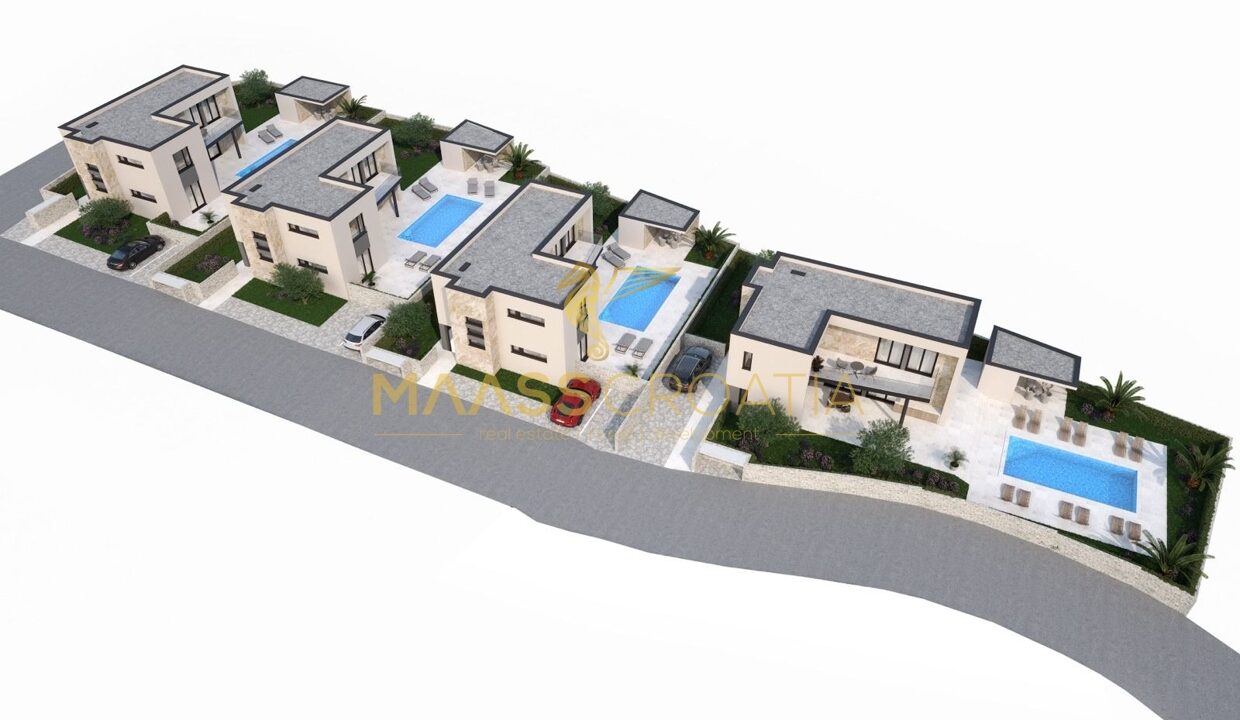 Das Anwesen ist ein exklusives Projekt mit einer großzügigen Grundstücksfläche von 600 m², privatem Parkplatz und einem Swimmingpool mit den Maßen 8×4 m.