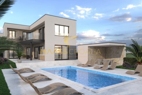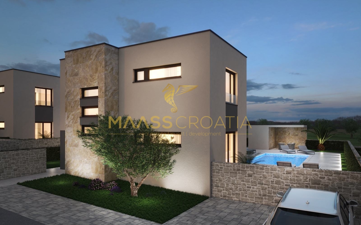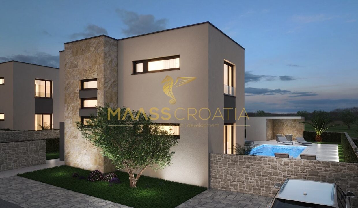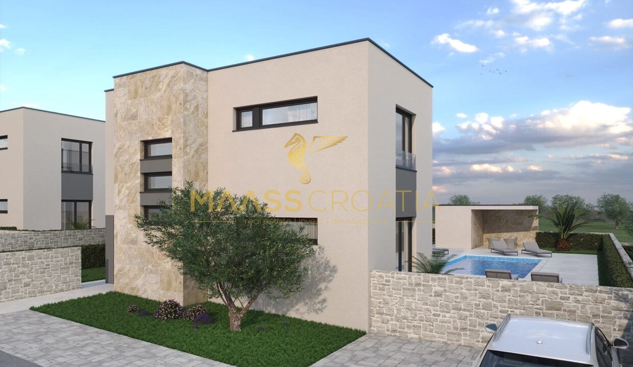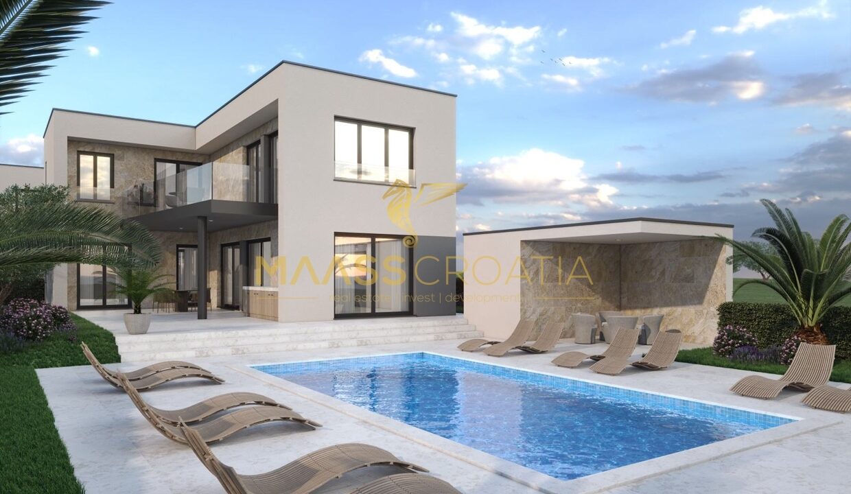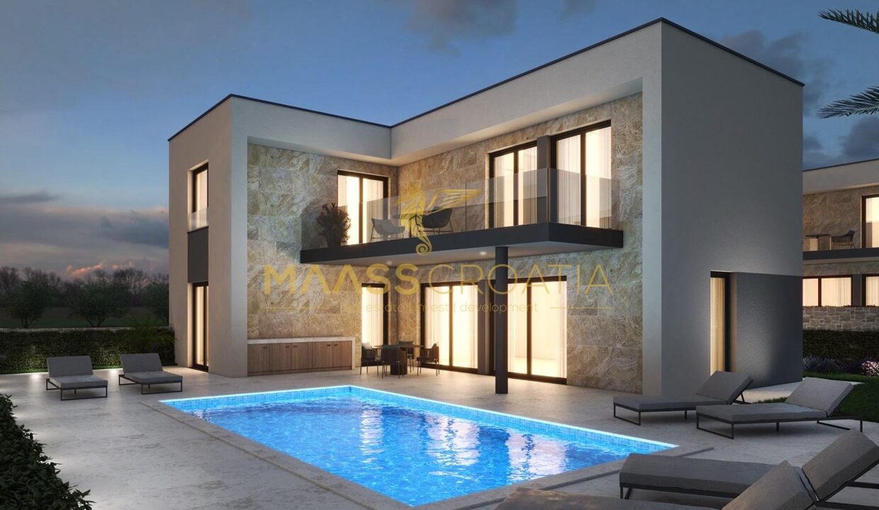 Attraktive Lage in Peroj, nur 450 Meter vom Meer entfernt. Diese luxuriöse, moderne Villa im mediterranen Stil hat eine Wohnfläche von 200 m². Sie besticht durch ihre Eleganz und bietet einen traumhaften Blick auf den Brijuni-Archipel und das kristallklare Meer.