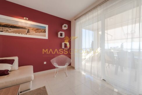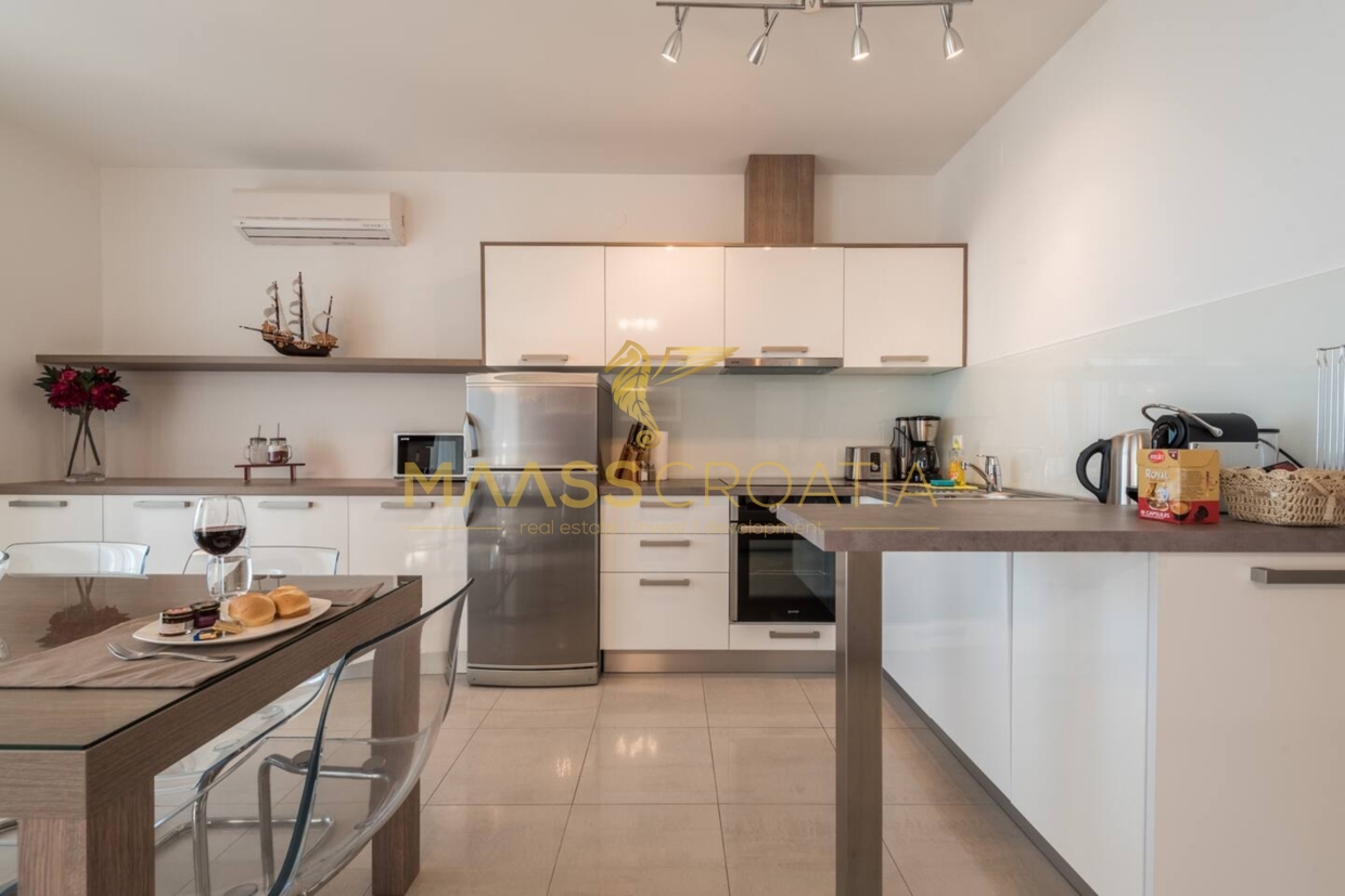 Zum Verkauf steht ein Apartment im ersten Stock einer Luxusvilla, die sich direkt an der Küste in Novalja auf der Insel Pag befindet.