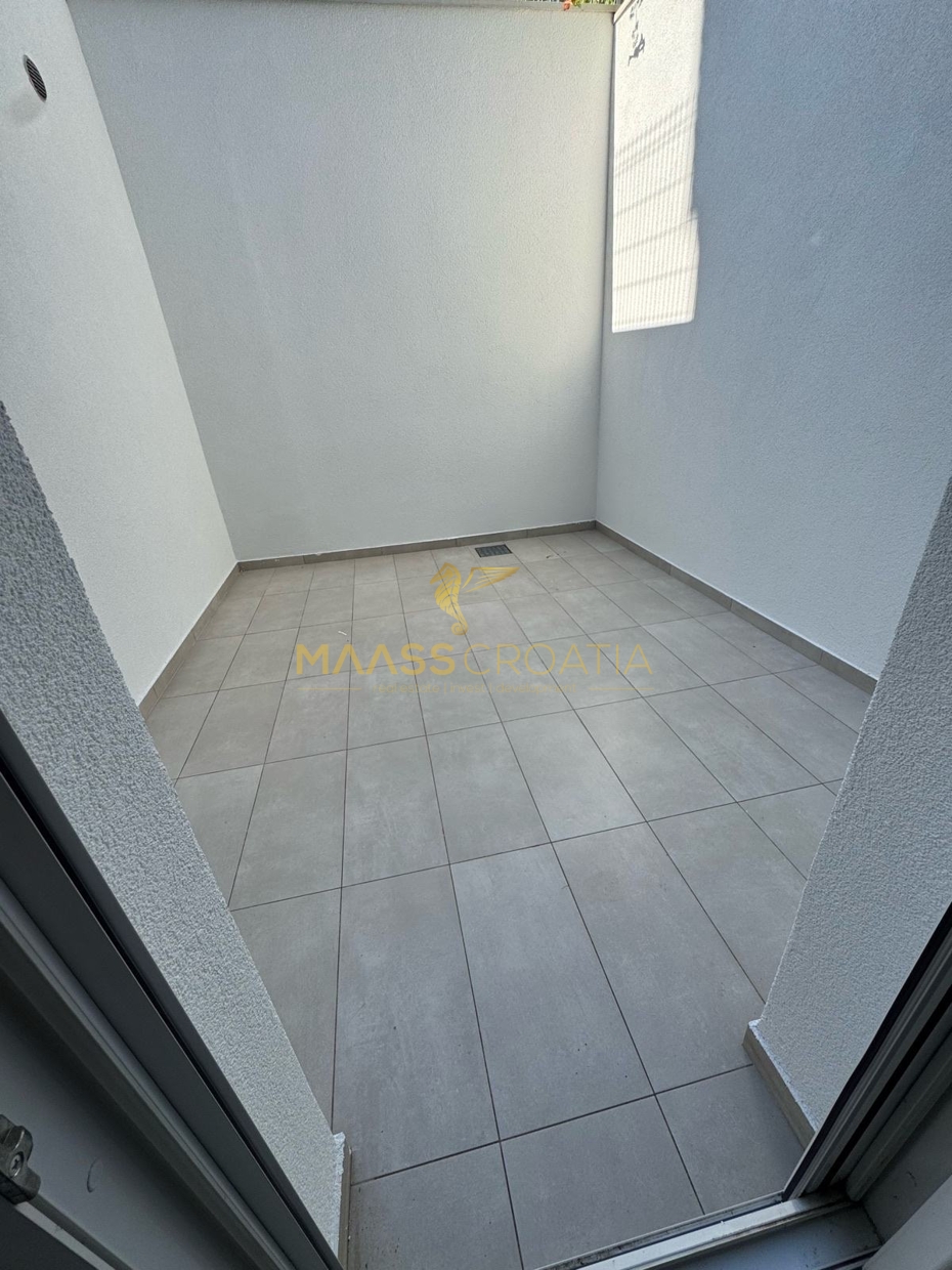 Sie besteht aus einem Eingangsbereich, einem Wohnzimmer, einer Küche mit Essbereich, einem Abstellraum, zwei Schlafzimmern, einem Badezimmer und einer Loggia.