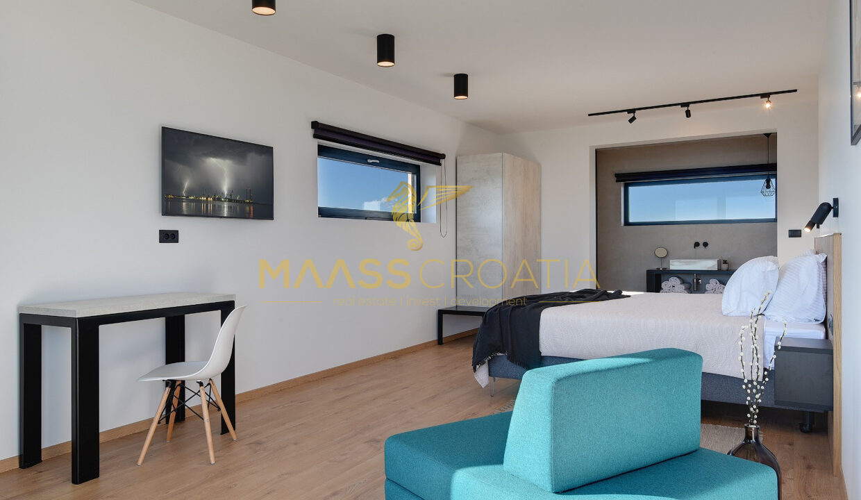 Diese wunderschöne dreistöckige, hochmoderne Villa mit 400 m2 Wohnfläche und 700 m2 Grundstücksfläche liegt nahe der Küste und nur 1 Kilometer von der Innenstadt von Pula entfernt.