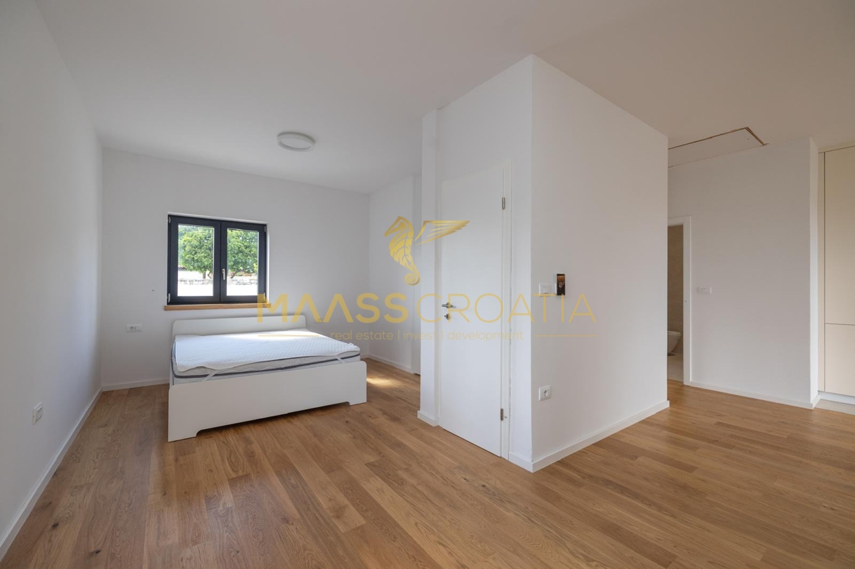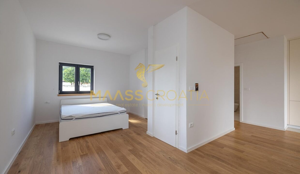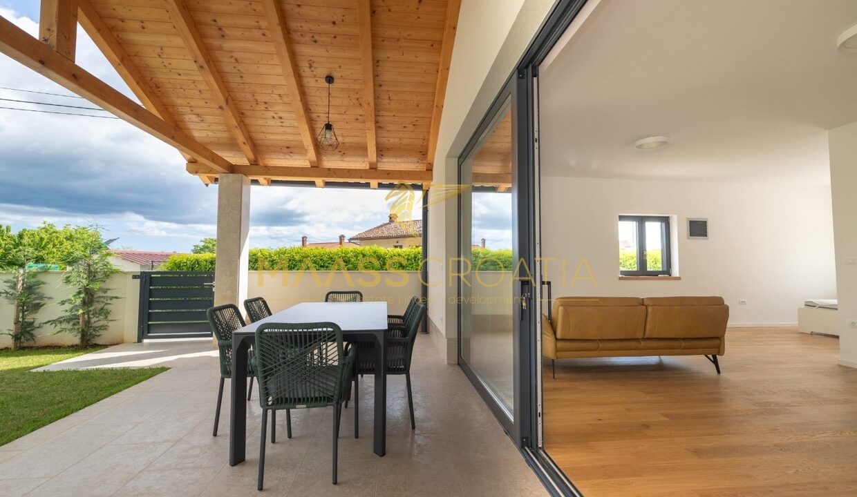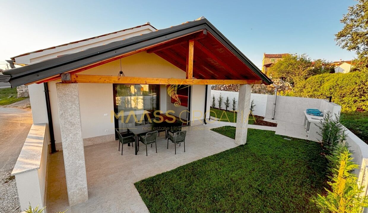 Dieses freistehende, eingeschossige Haus wurde 2024 neu erbaut und befindet sich im Zentrum von Bale in einer ruhigen Einbahnstraße.
