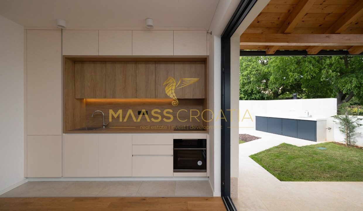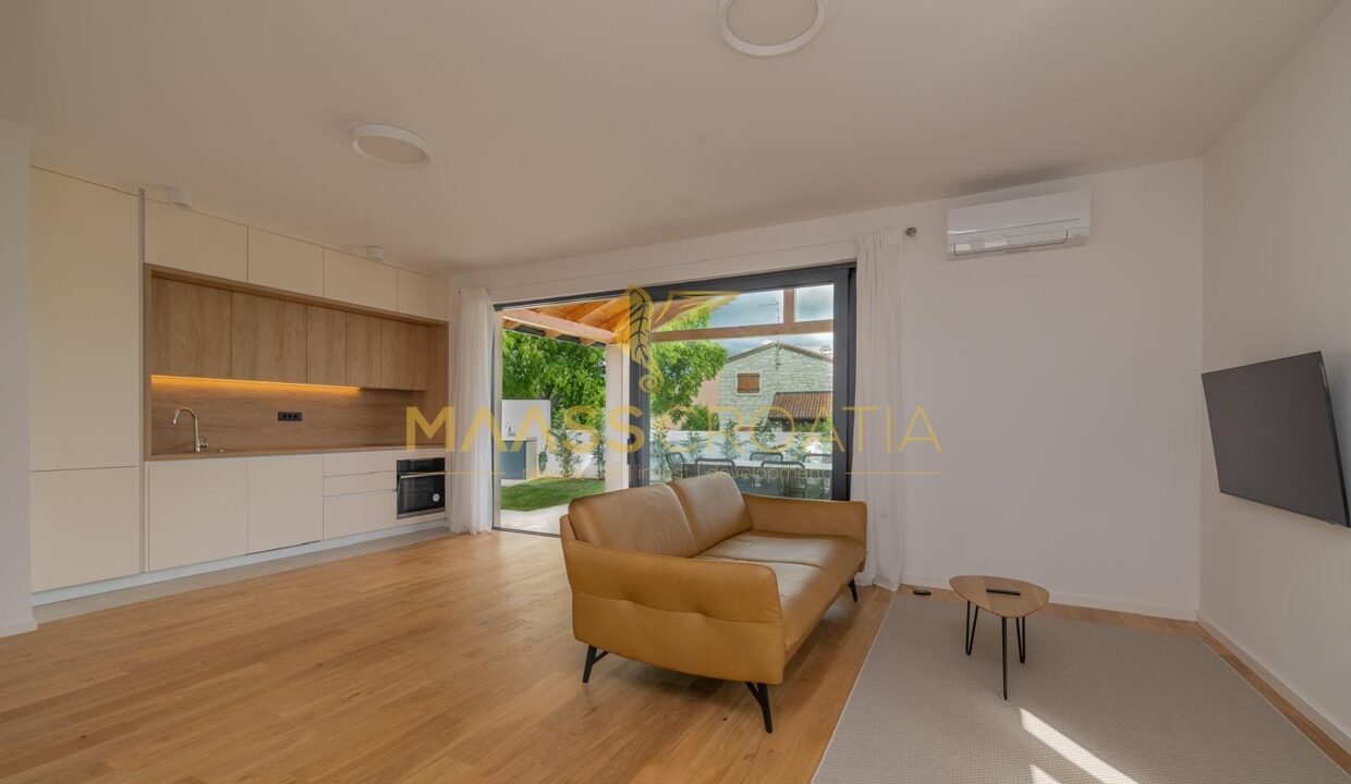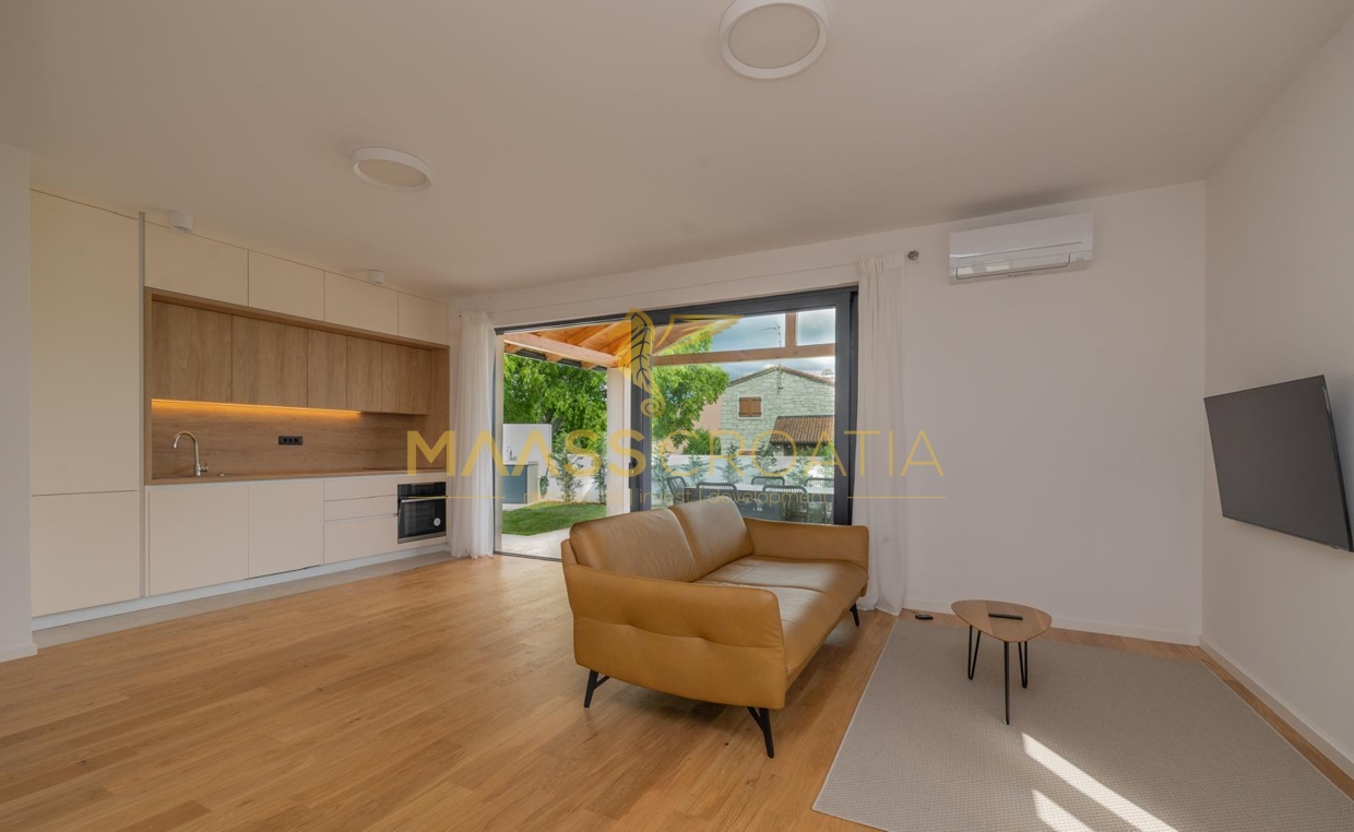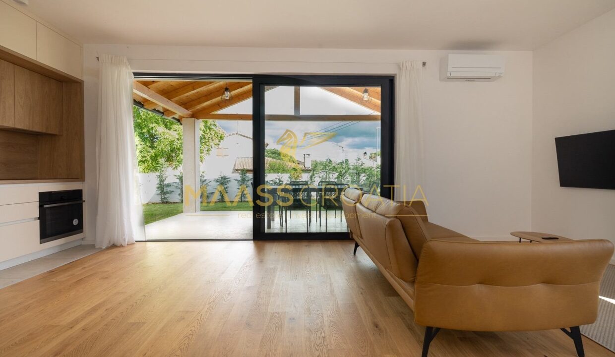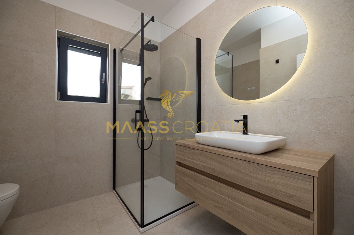Dieses freistehende, eingeschossige Haus wurde 2024 neu erbaut und befindet sich im Zentrum von Bale in einer ruhigen Einbahnstraße.
