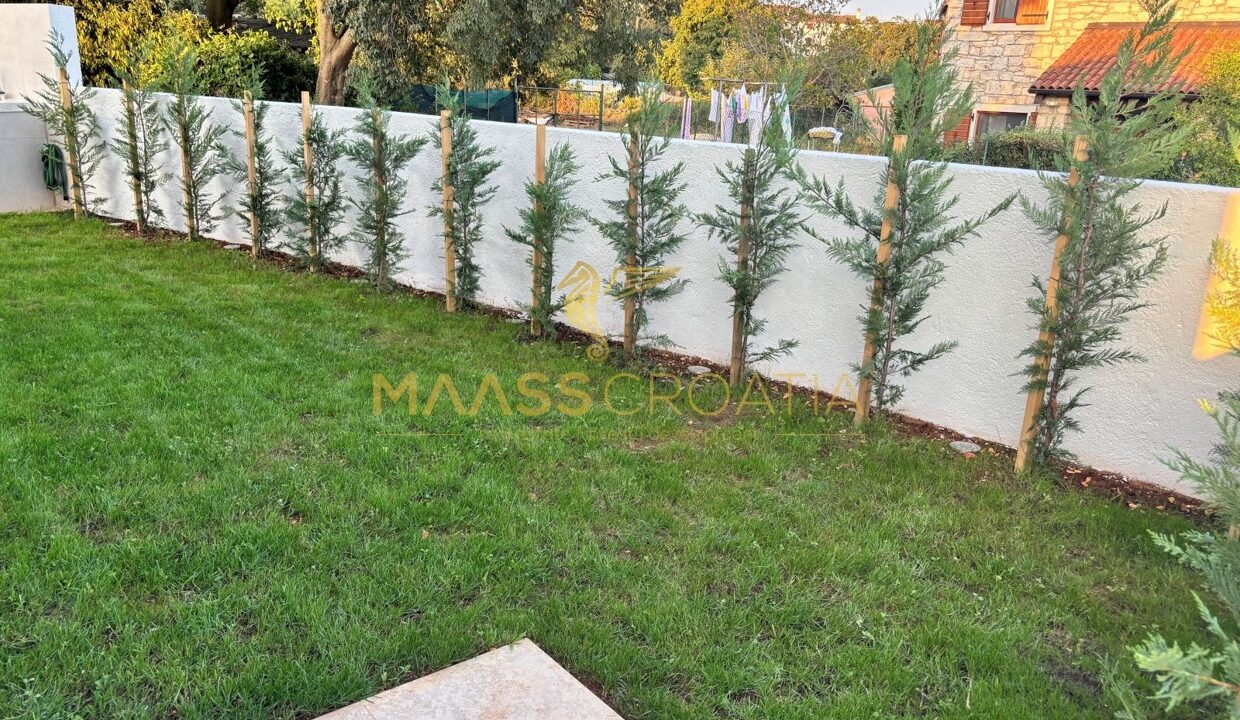 Entlang des Zauns wurden 30 junge Zypressen gepflanzt, um diesen in eine natürliche Grünfläche zu verwandeln. Entlang des gesamten Zauns wurde eine stimmungsvolle Solarbeleuchtung installiert. Zur Ausstattung gehören ein Bosch-Rasenmäher, ein Kercher Miniwash, ein Verlängerungskabel und ein Gartenschlauch.