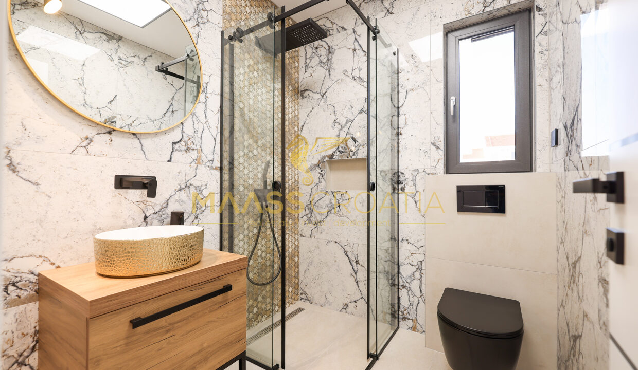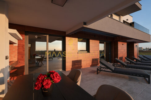 FASSADE: Wärmedämmung – 10 cm -AUSSENZIMMERARBEITEN: PVC mit Holzverkleidung innen, Hebe-Schiebe-Wände -DACH: TPO-Folienisolierung -HEIZUNG UND KÜHLUNG: Fußbodenheizung und Kühlung durch LG-Wärmepumpen -BÖDEN: Keramik der Klasse I -AUSSTATTUNG: Alarm, Videoüberwachung, Brand- und Wassermeldeanlage, Antennenanlage/TV/Internet, Entkalkungsanlage, Ladegerät für Elektrofahrzeuge, maßgefertigte Möbel… UMGEBUNG: – Whirlpool, Grill, beheizter Pool / 40m2