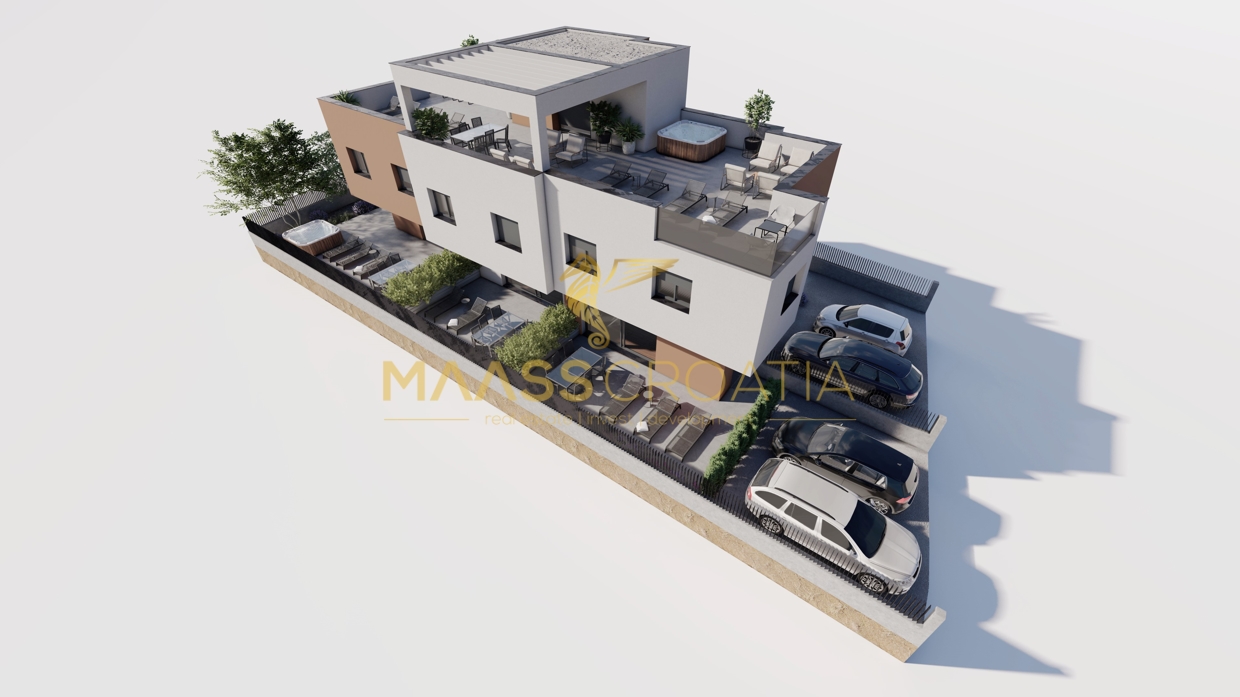 Schönes Neubau-Familienhaus mit moderner Architektur und funktionaler Aufteilung nur 200 m vom Blue Beach entfernt.