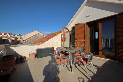 Das Haus verfügt über zwei Terrassen: im ersten Stock gibt es eine Terrasse von 3,00 m² und im Dachgeschoss eine geräumige Terrasse von 23,57 m² mit Blick auf die Innenstadt, den Park und das Meer.