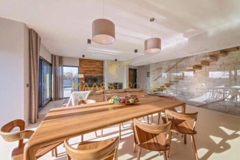 Die Villa verfügt über 117 m² Wohnfläche und besteht aus drei geräumigen Schlafzimmern, jeweils mit eigenem Bad, was maximalen Komfort und Privatsphäre für alle Gäste garantiert. Im Erdgeschoss befinden sich ein offener Wohnbereich mit angrenzendem Esszimmer und eine modern ausgestattete Küche, ideal zum geselligen Beisammensein, sowie ein separates WC.