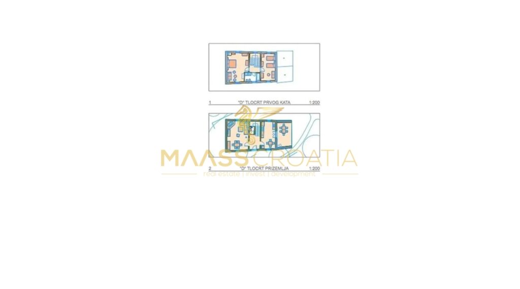 Das kleinere Gebäude mit einer Fläche von 155,70 m² besteht im Erdgeschoss aus einer Küche und einem Wohnzimmer mit Kamin, während im Obergeschoss zwei Schlafzimmer mit einem Badezimmer und WC untergebracht sind.