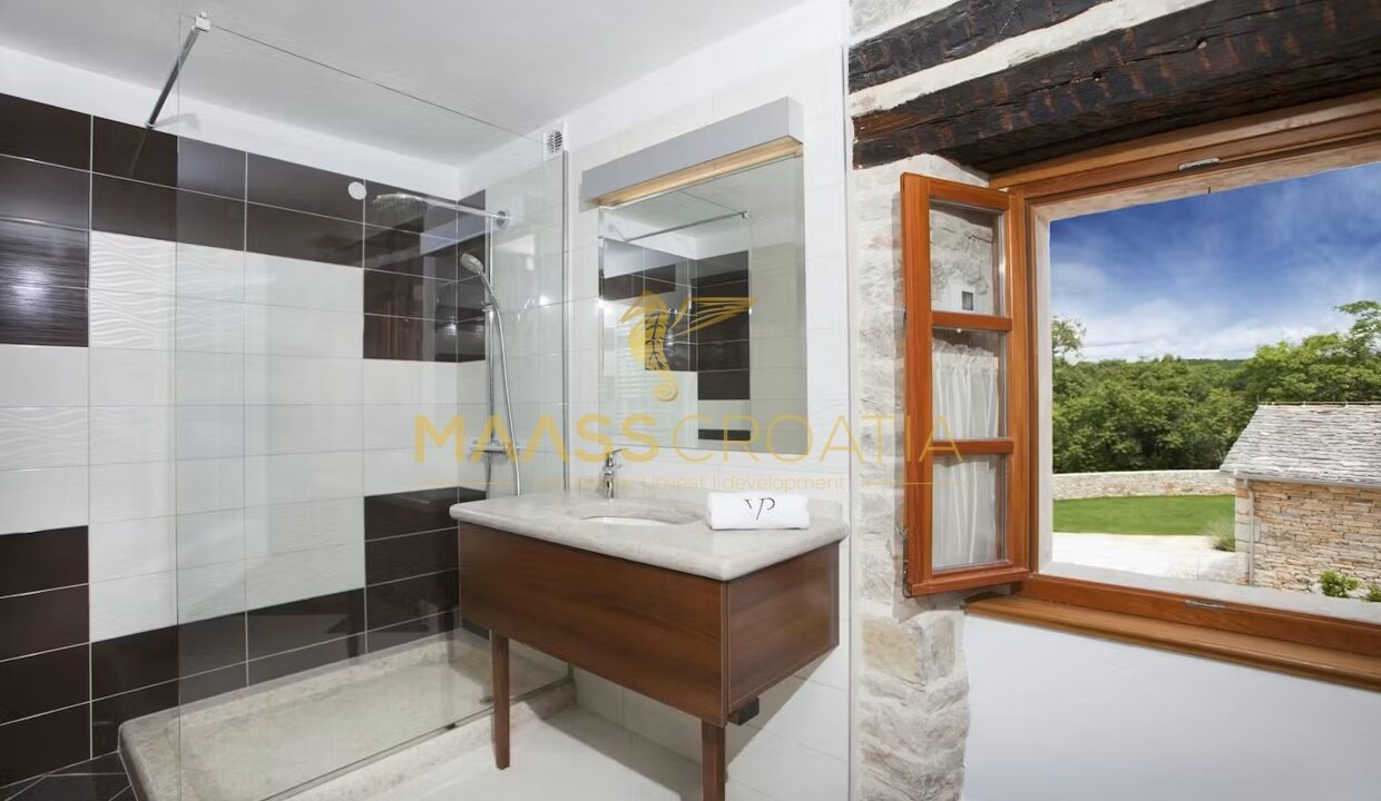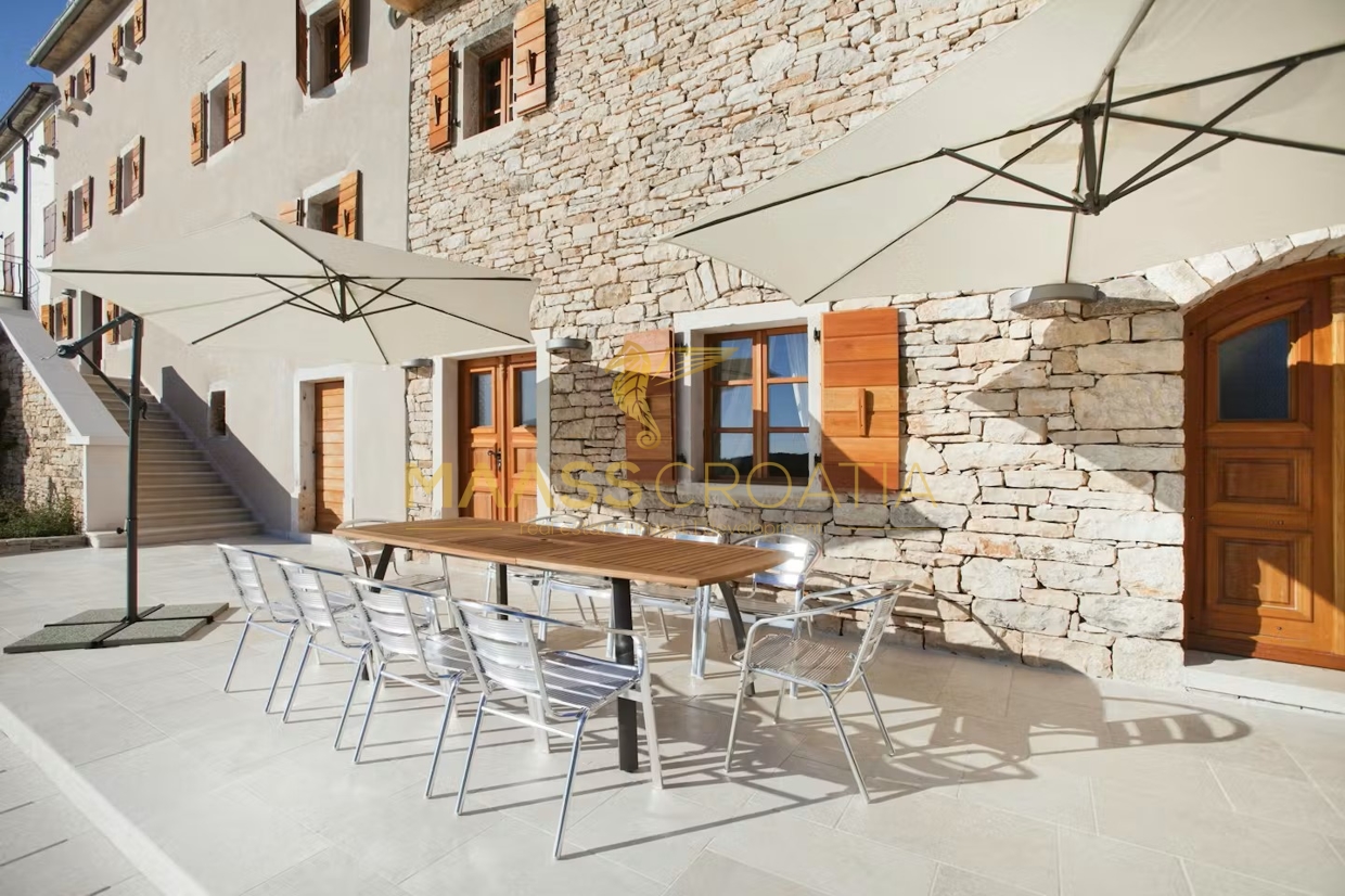 Das gesamte Anwesen besteht aus drei Gebäuden, die von einem großen Garten umgeben sind, der durch eine Steinmauer eingefriedet ist und vollständige Privatsphäre sowie Ruhe vor dem hektischen Alltag und Stress bietet – der perfekte Ort für Erholung in Istrien.