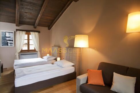 Die Beleuchtung wurde von Lumentart – Dean Skira entworfen und ausgestattet. Alle installierten Leuchten sind Designerstücke. Die Möbel wurden auf Bestellung in Italien gefertigt, während die Außenfensterrahmen aus hochwertigem österreichischen Lärchenholz bestehen. Alte Eichenbalken und Bretter wurden für die Deckenverkleidungen verwendet, und alle Fensterrahmen sind aus Stein und original.