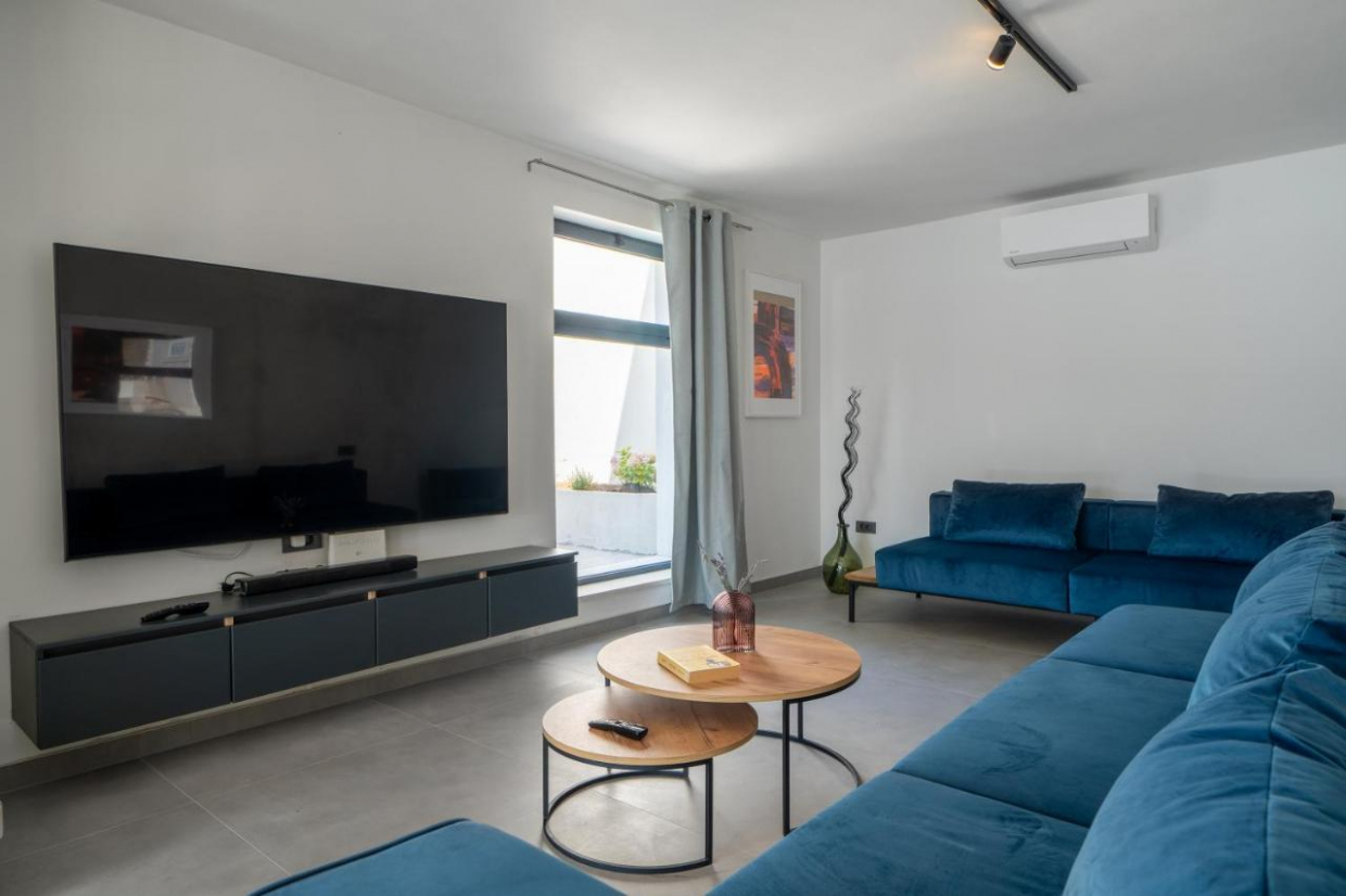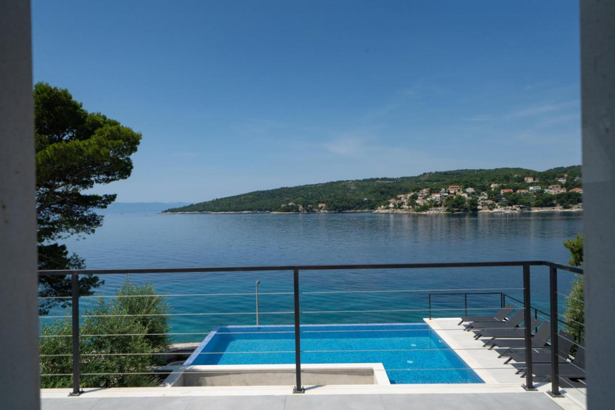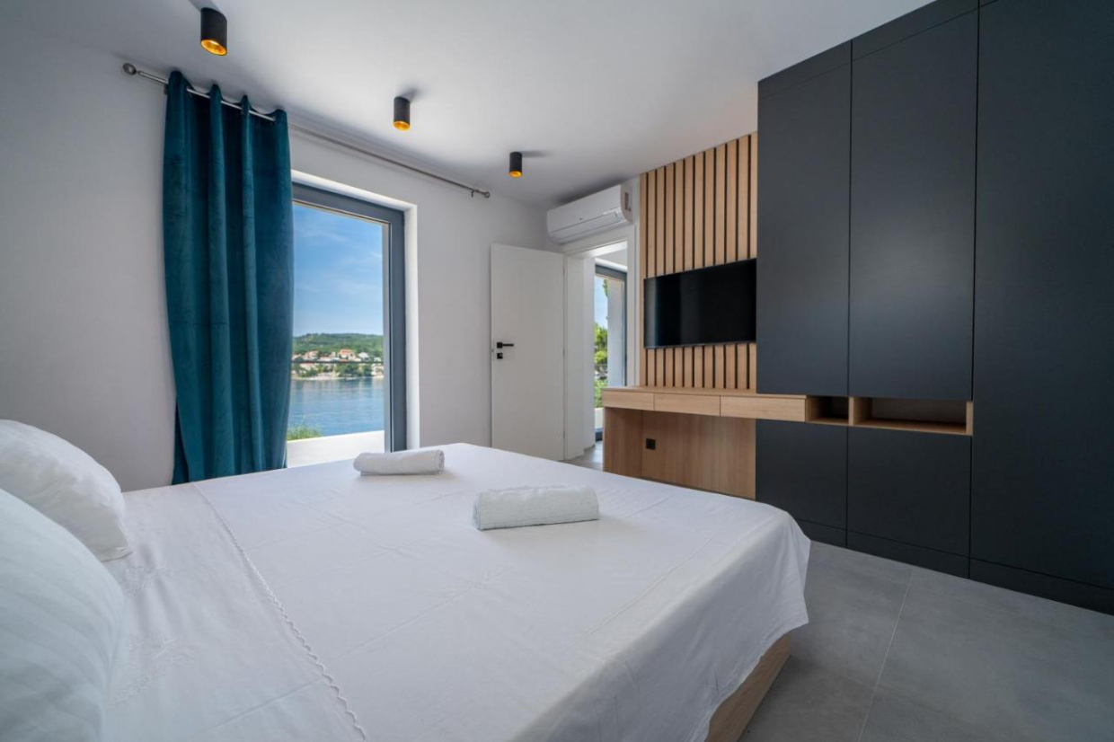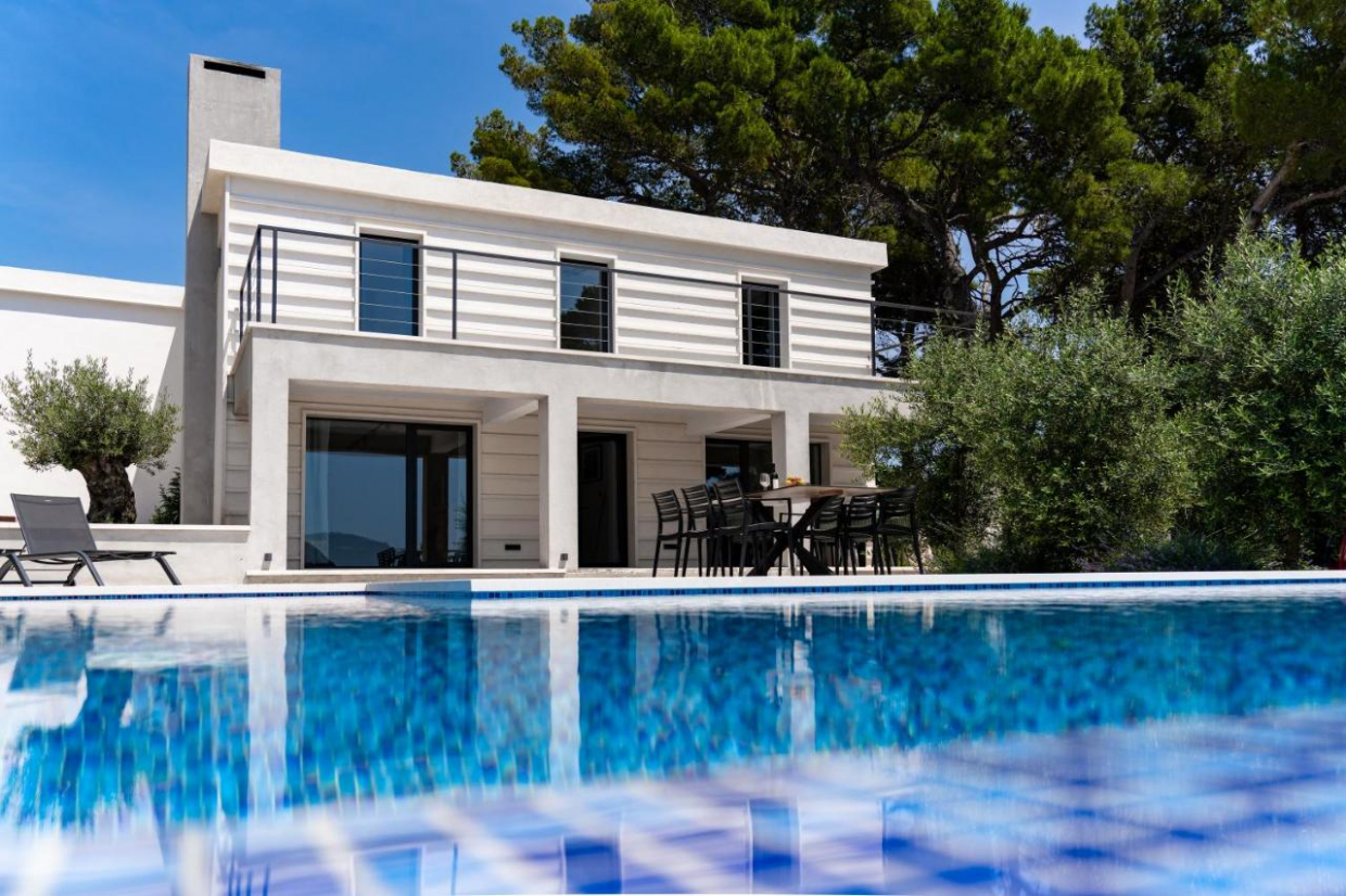 Entspannen Sie sich im weitläufigen Außenbereich, der sich auf einem 1100 m2 großen Grundstück befindet. Der üppige Garten und die Terrasse bieten den idealen Rahmen, um im Freien zu speisen oder ein Glas Wein zu genießen, während Sie den Sonnenuntergang über dem kristallklaren Wasser der Adria betrachten.