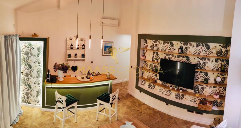 Geschmackvoll eingerichtet und bezugsfertig im zweiten Obergeschoß eines kleinen Wohnhauses und zu einem fairen Preis kann man diese Wohnung auf Rab erwerben, optimal nutzbar als Ferienwohnung aber durchaus auch zur Vermietung in der Saison.