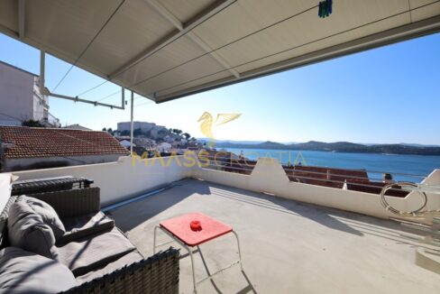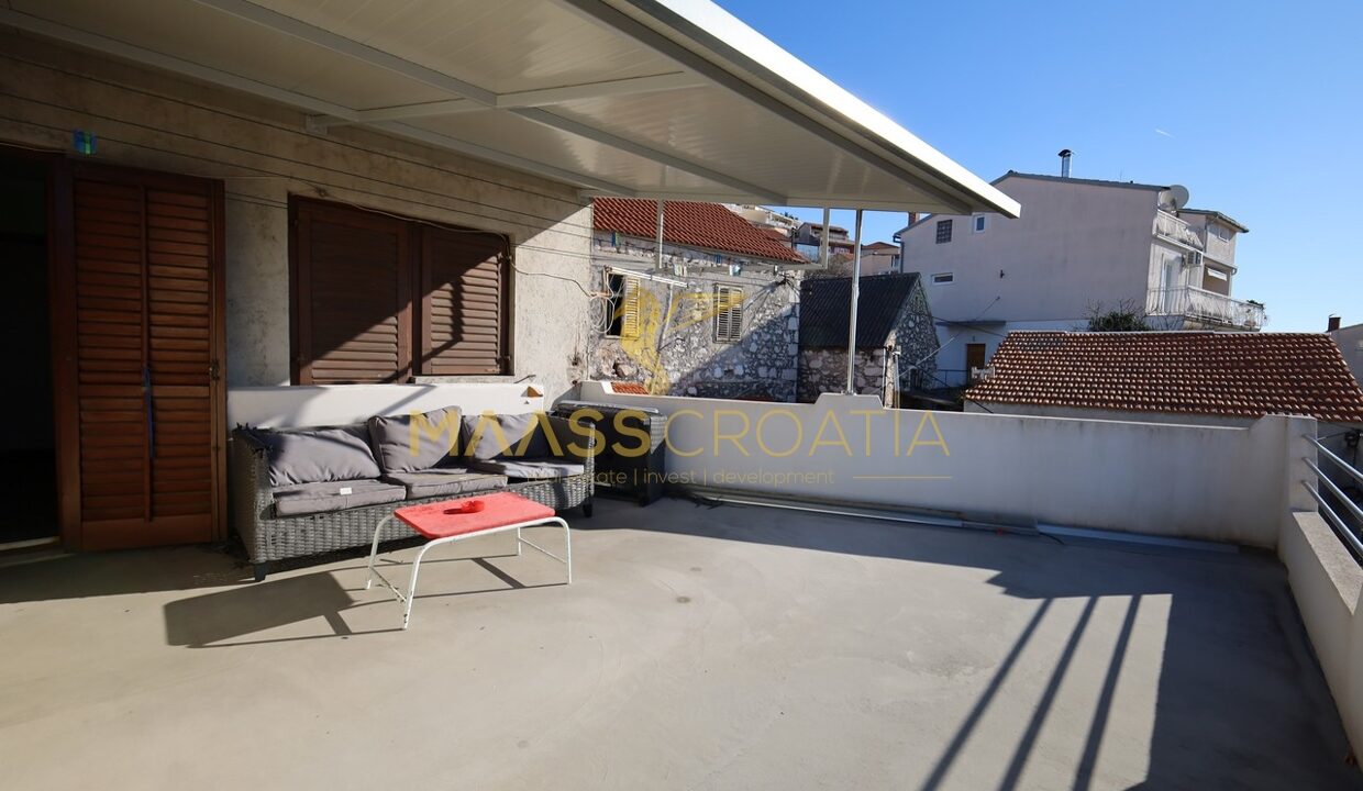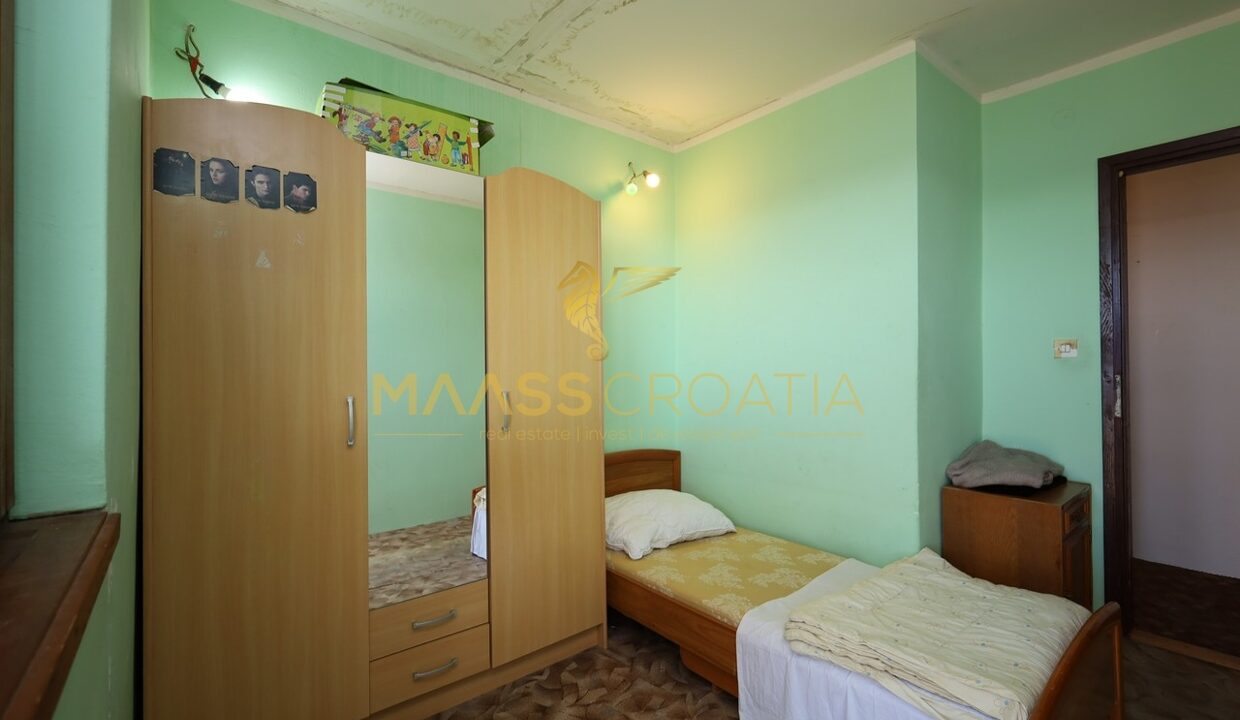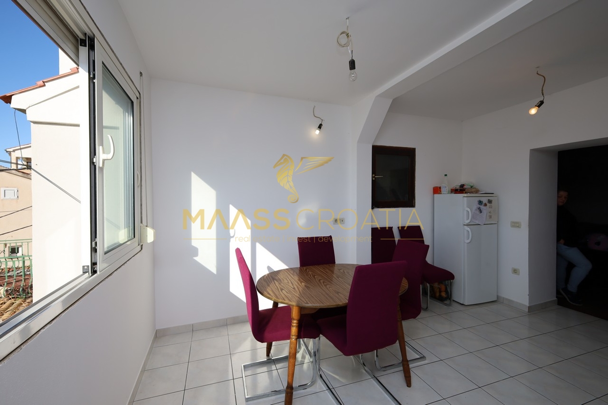 Die zweistöckige Wohnung mit einer Gesamtnutzfläche von 117,46m² liegt bei Sibenik und wurde in zwei separate Wohneinheiten aufgeteilt.