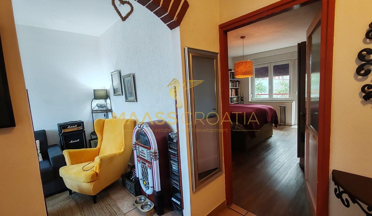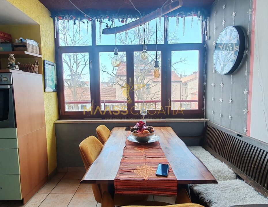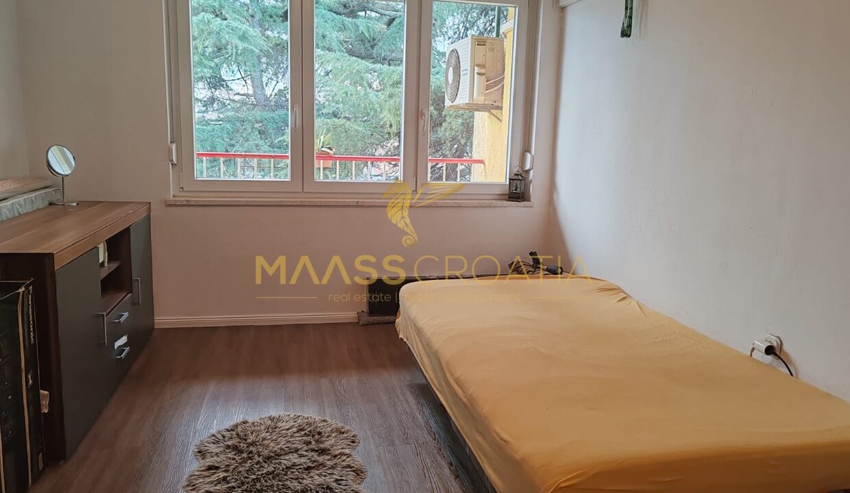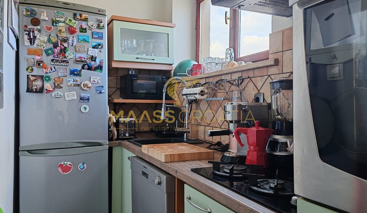 Die 58,15 m² große Wohnung befindet sich im 3. Obergeschoss eines Wohnhauses im ruhigen Vorort Kaštanjer, unweit des Stadtzentrums.