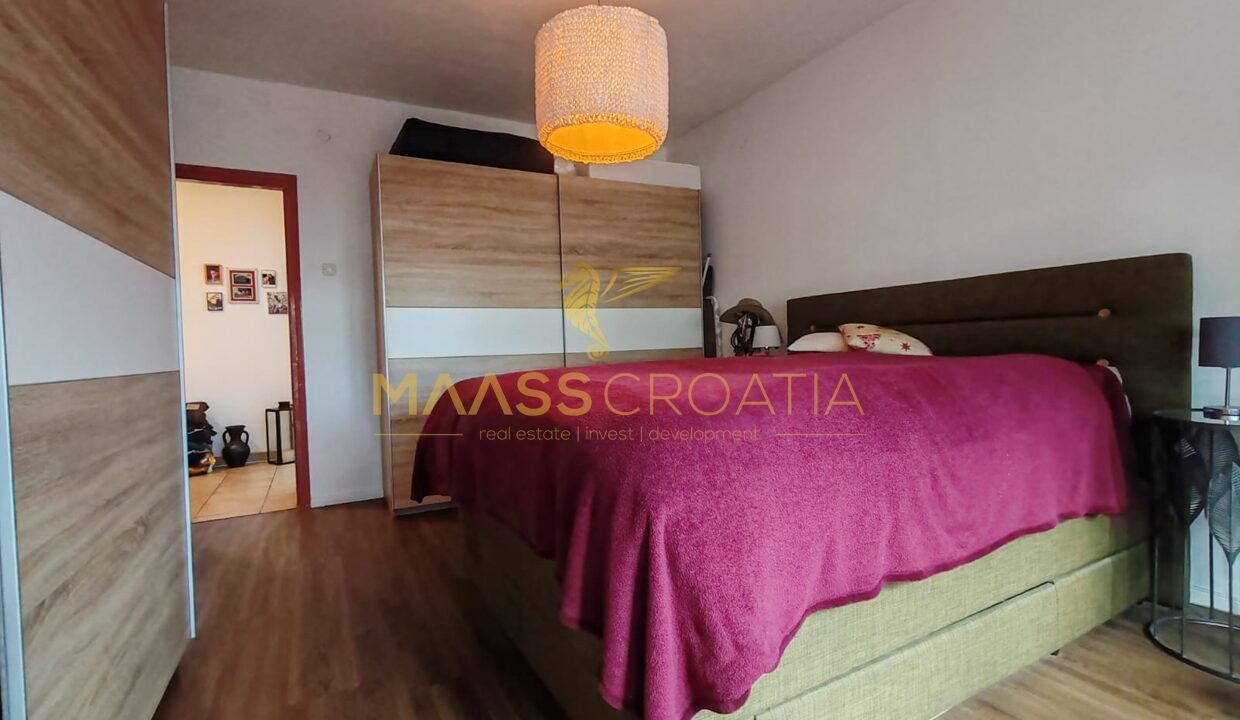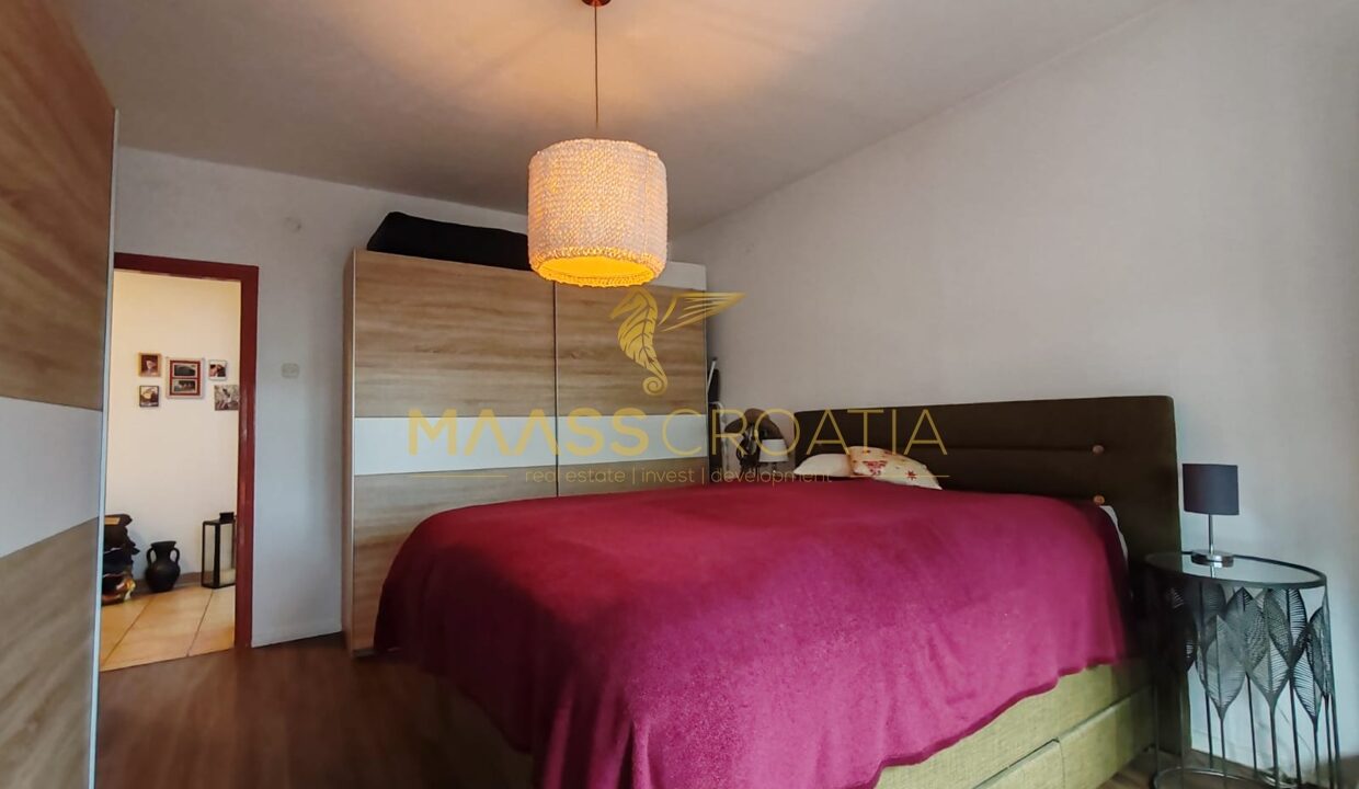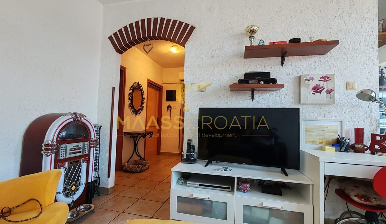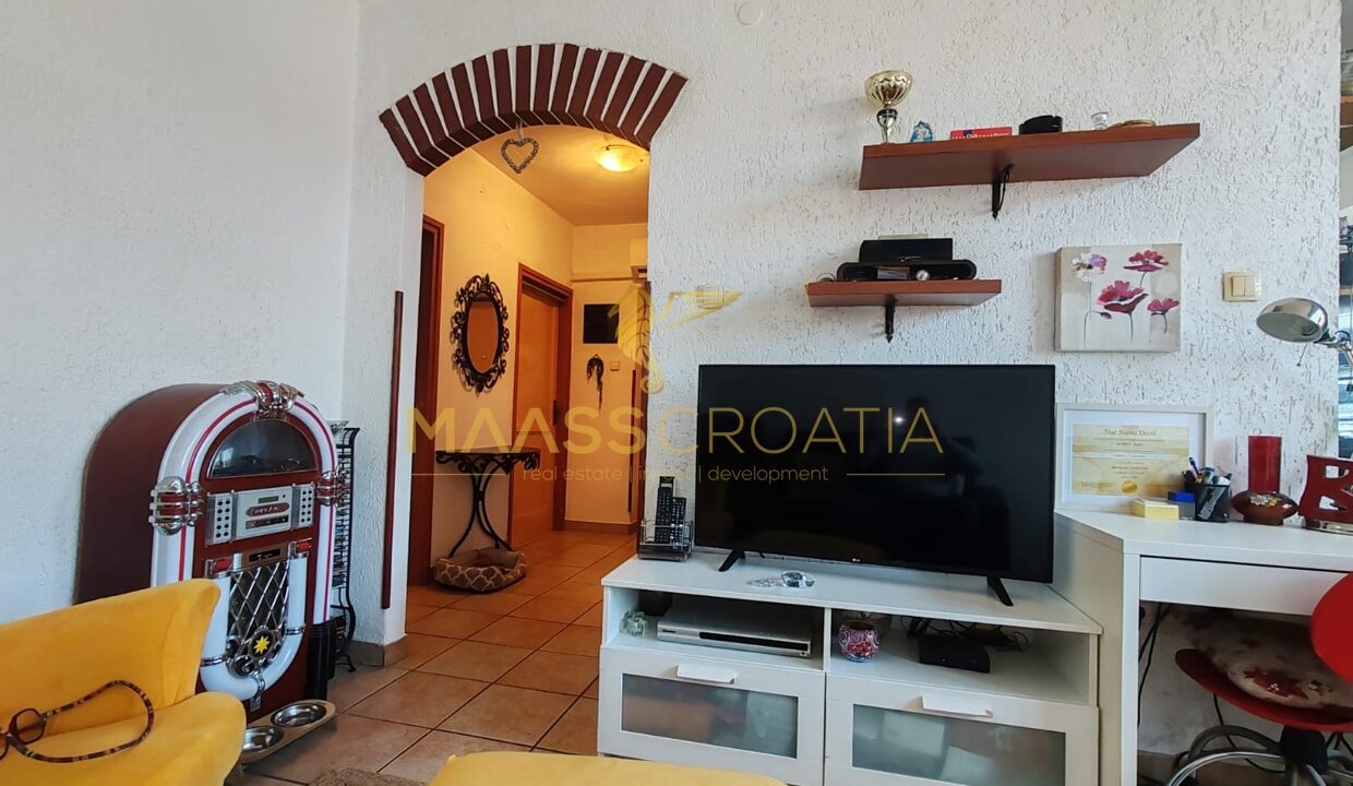 Die 58,15 m² große Wohnung befindet sich im 3. Obergeschoss eines Wohnhauses im ruhigen Vorort Kaštanjer, unweit des Stadtzentrums.