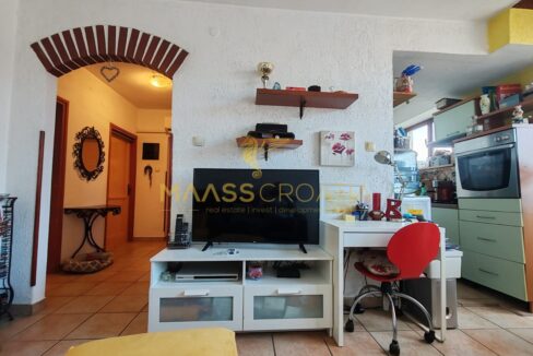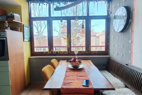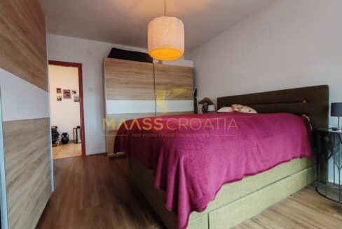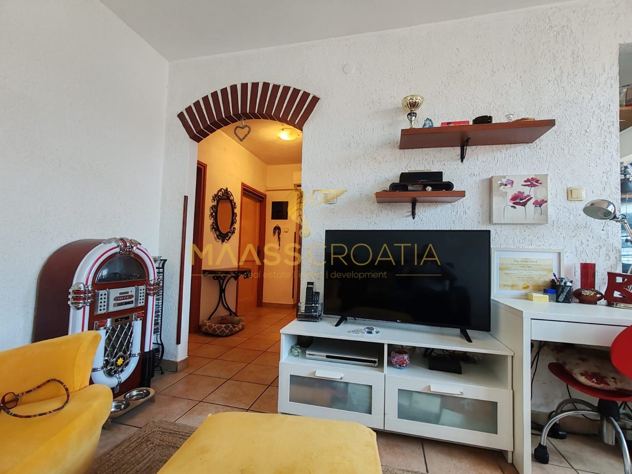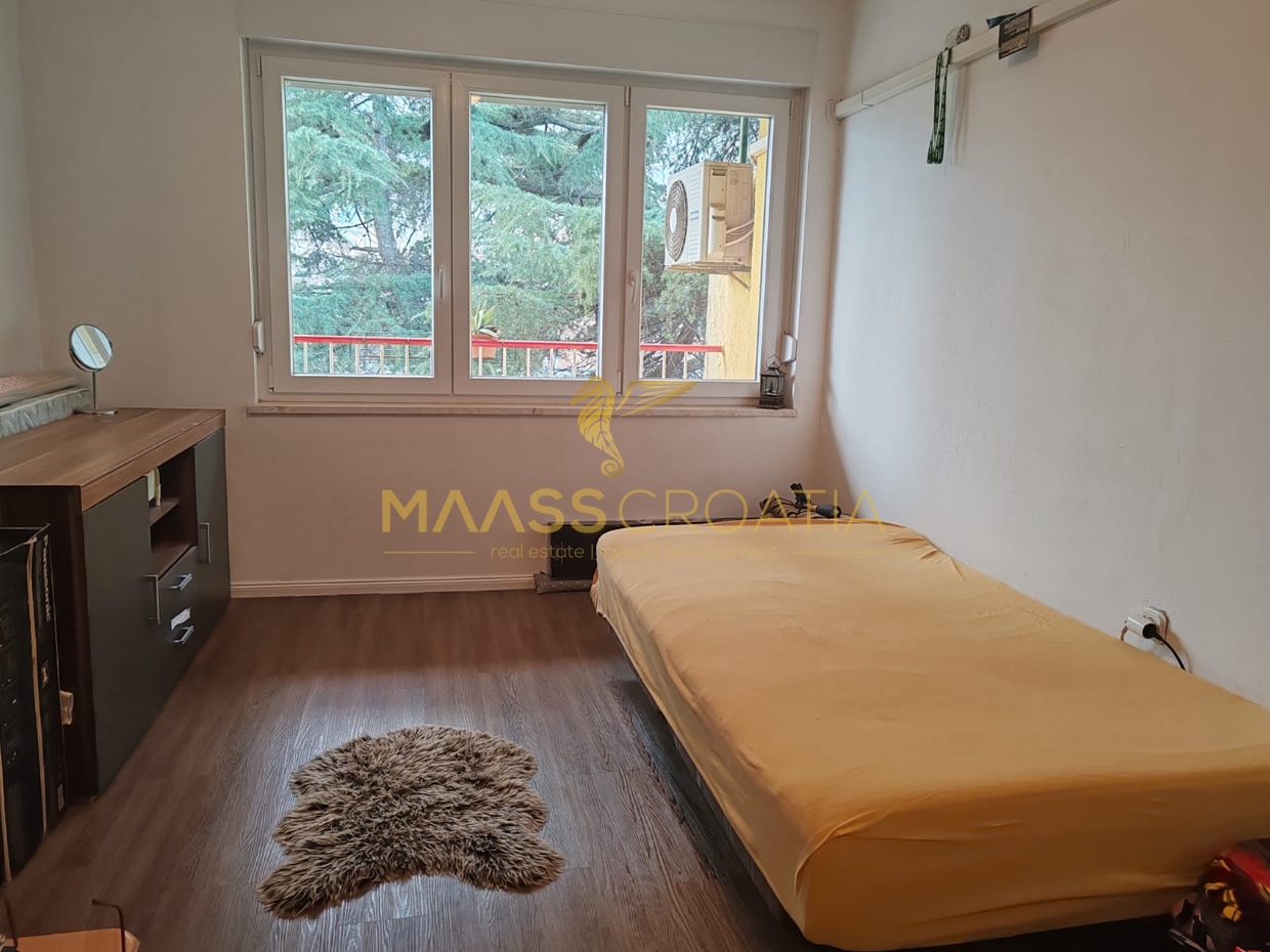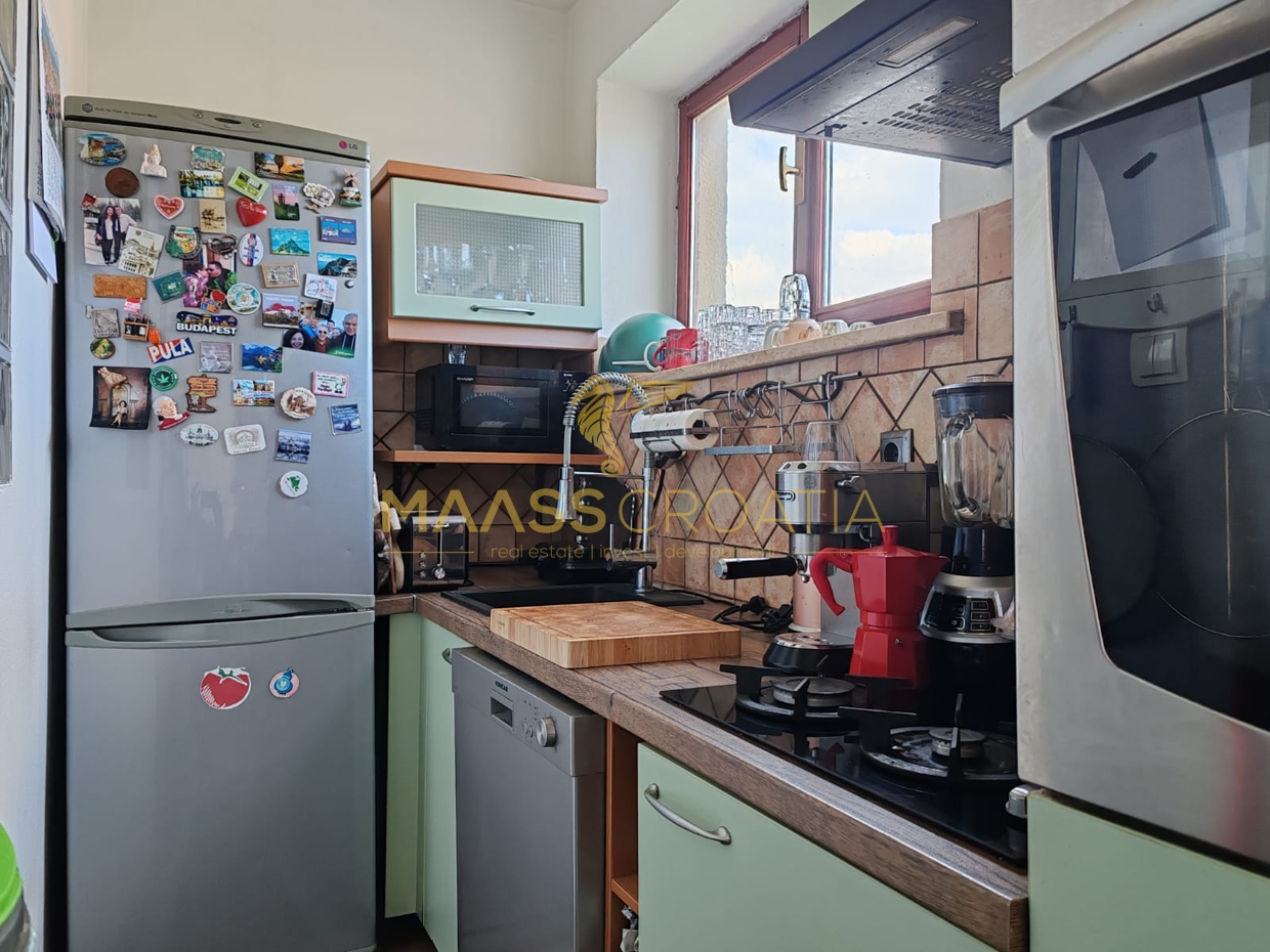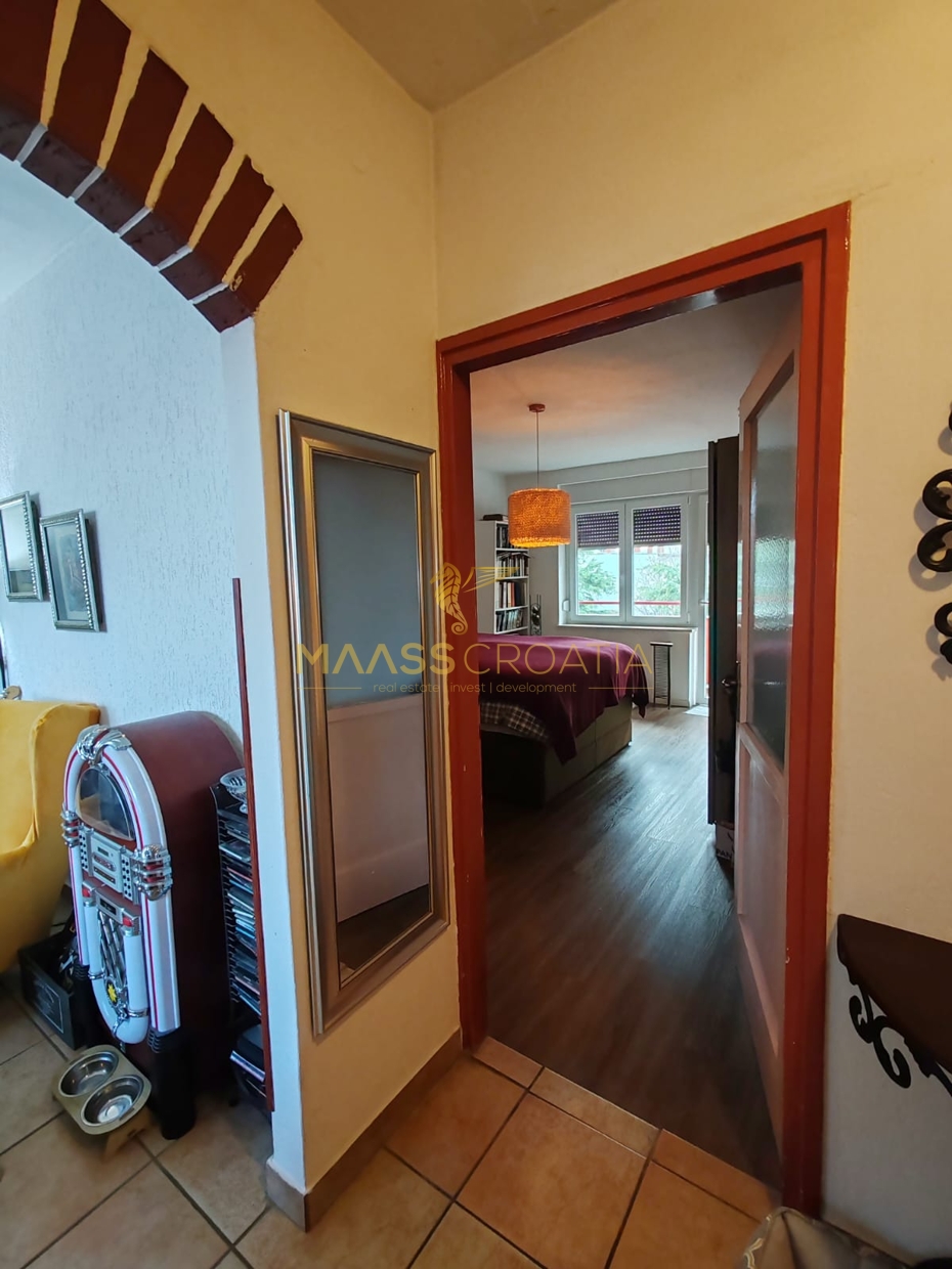Die 58,15 m² große Wohnung befindet sich im 3. Obergeschoss eines Wohnhauses im ruhigen Vorort Kaštanjer, unweit des Stadtzentrums.