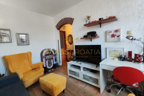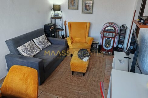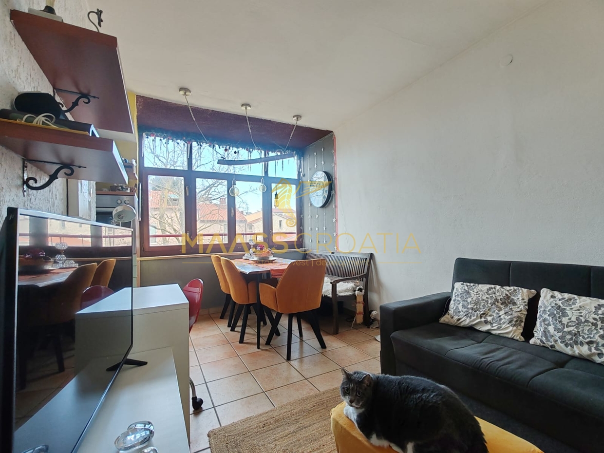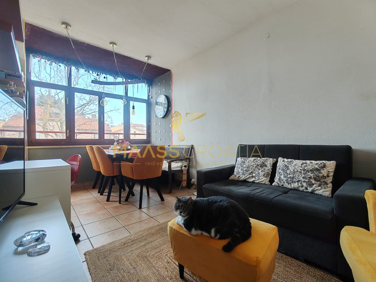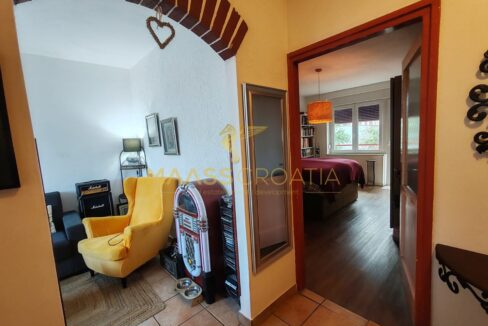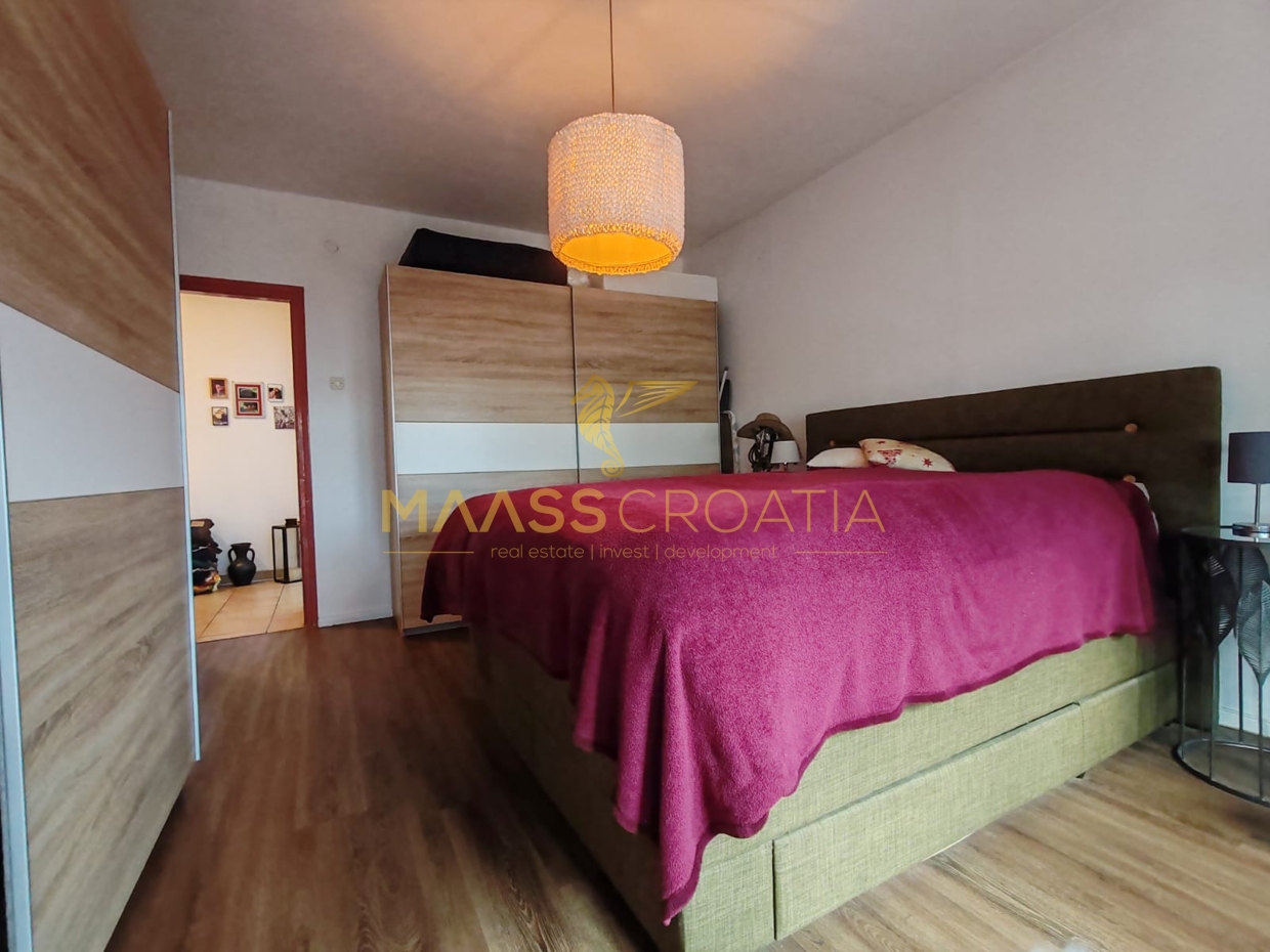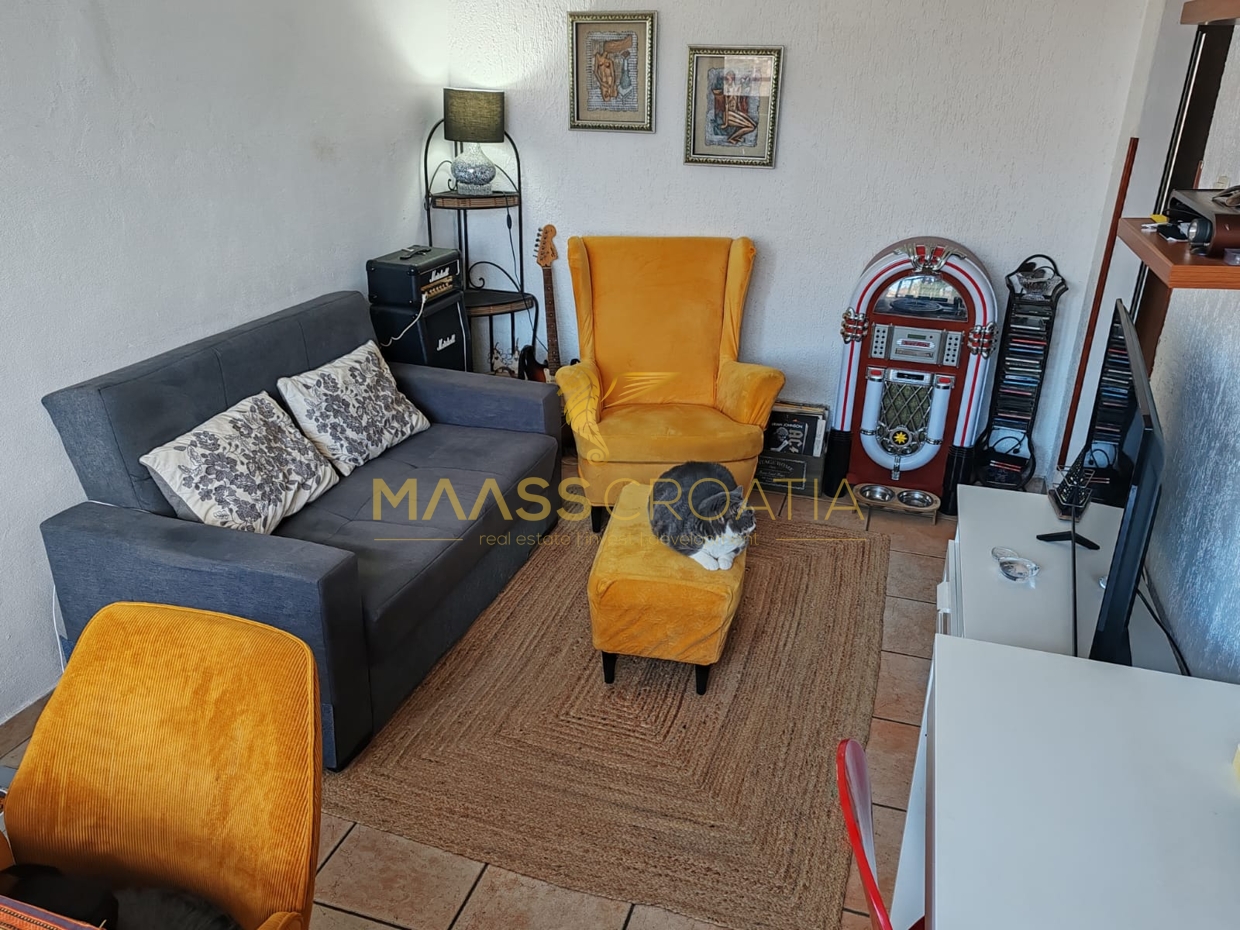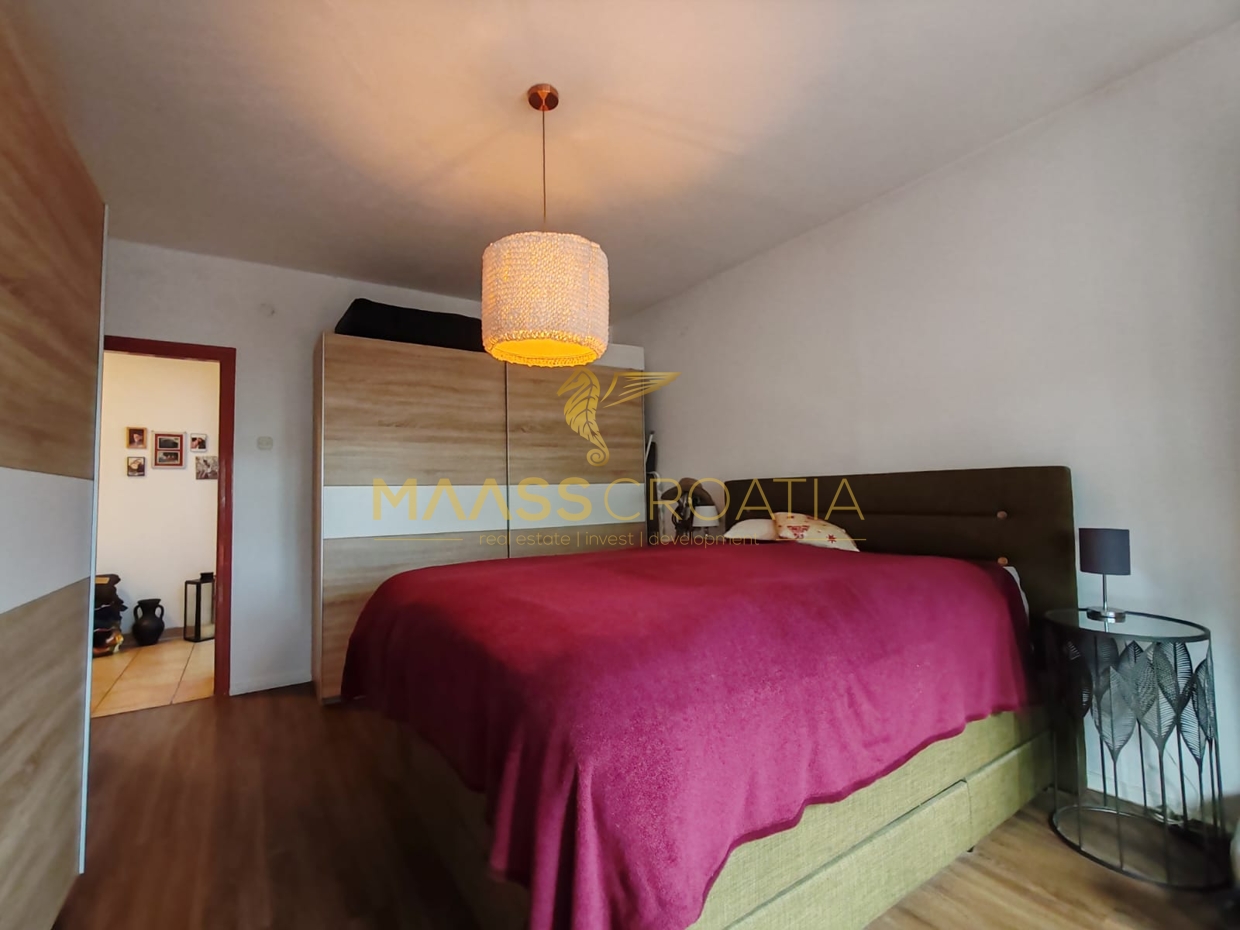 Die 58,15 m² große Wohnung befindet sich im 3. Obergeschoss eines Wohnhauses im ruhigen Vorort Kaštanjer, unweit des Stadtzentrums.