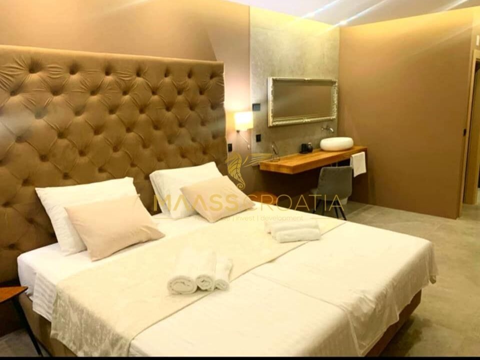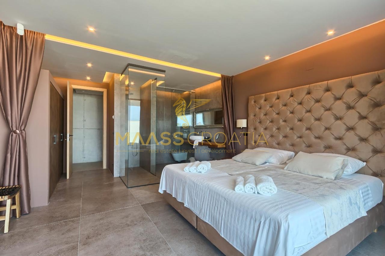 Der Pool verfügt über die modernste Wasseraufbereitungstechnik und eine verbesserte therapeutische Wirkung, da Chlor auf natürliche Weise durch Elektrolyse aus Salz gewonnen wird, was viel gesünder ist als die klassische Chlorwasserbehandlung, und Chlor im Wasser überhaupt nicht zu spüren ist, was die Menschen zu schätzen wissen empfindlich gegen Chlor. Der Zaun ist sehr attraktiv und besteht aus Gabionenkörben, in denen Schotter von Hand installiert ist. Dieser Stein wird auch von LED-Streifen beleuchtet, sodass er abends eine hervorragende Atmosphäre bietet. Die Villa verfügt über eine Außendusche und ein Außenwaschbecken. Warmwasser wird durch Sonnenkollektoren auf dem Dach erwärmt, wodurch die Kosten auf ein Minimum reduziert werden.
