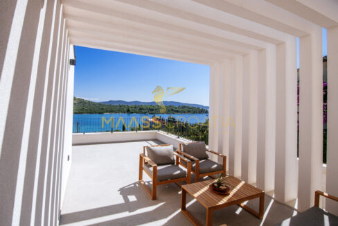 Die obere Terrasse bietet einen atemberaubenden Ausblick mit Panoramablick auf die Bucht und die umliegenden Inseln.