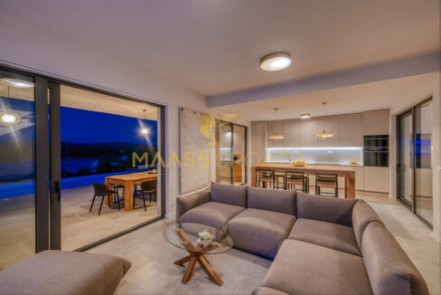 Die Villa beinhaltet einen offenen Wohnbereich mit Küche und Esszimmer, drei große Schlafzimmer, drei Badezimmer + 1 zusätzliches WC, außerdem Waschküche, Abstellraum und Maschinenraum.