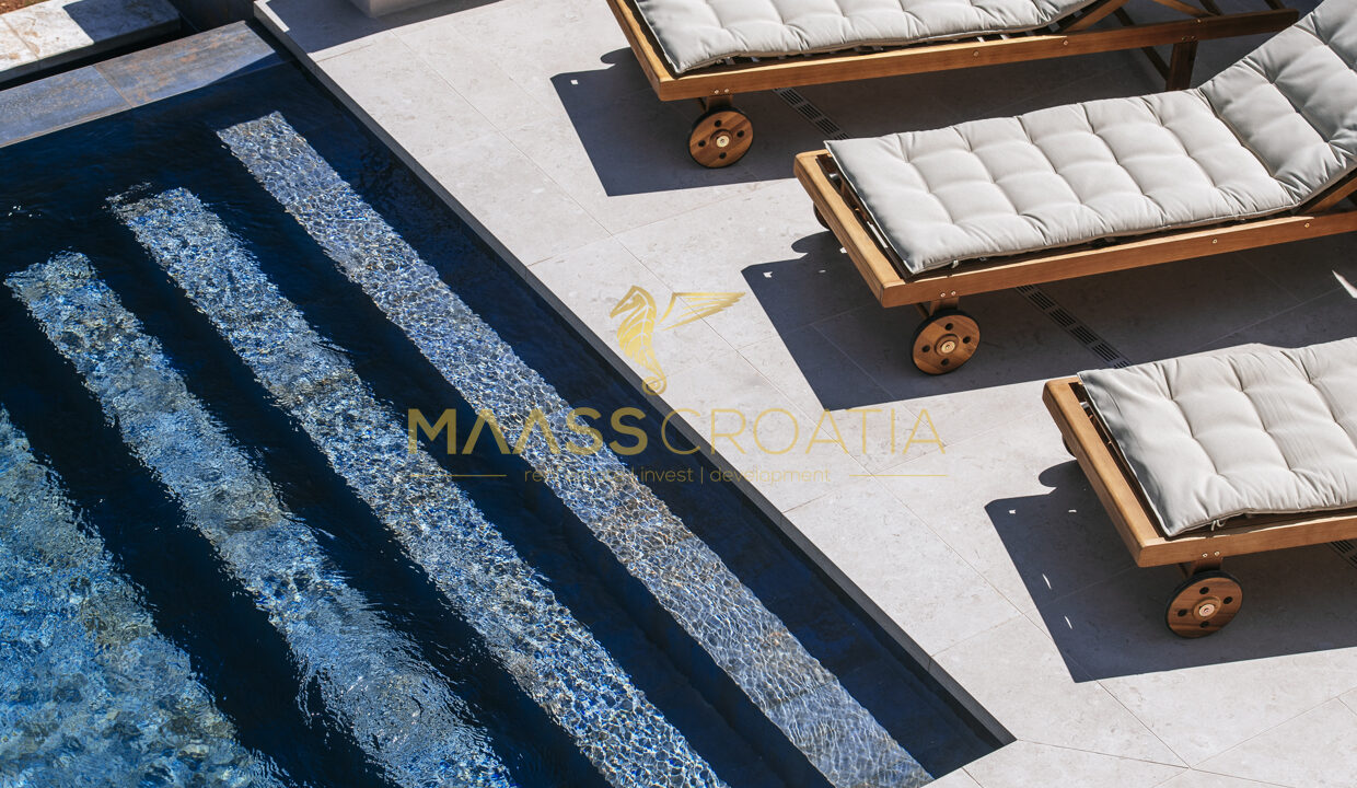 Für Sonnenanbeter zwei Terrassen (oben und unten), Sonnendeck, Balkon und Infinity-Pool (9,5 x 4,5 m)