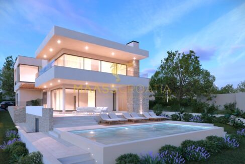 Die auf dem 600 qm Grundstück liegende Villa wurde mit moderner Architektur, klaren Linien, großzügigen Terrassen und sorgfältig ausgewählten Materialien entworfen.